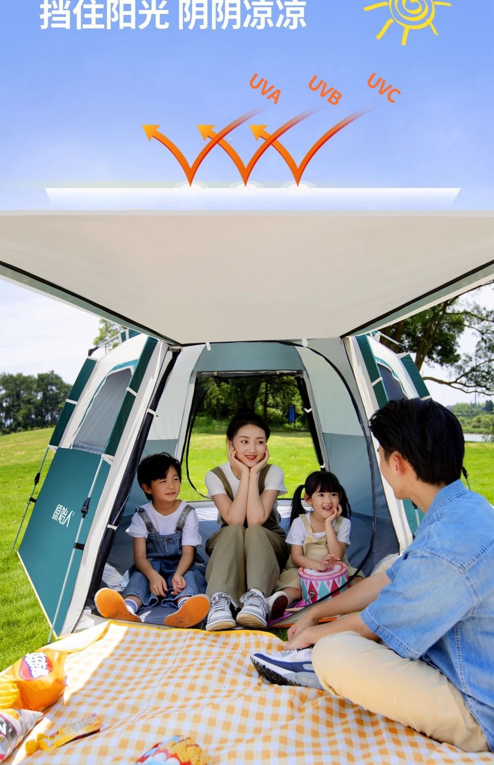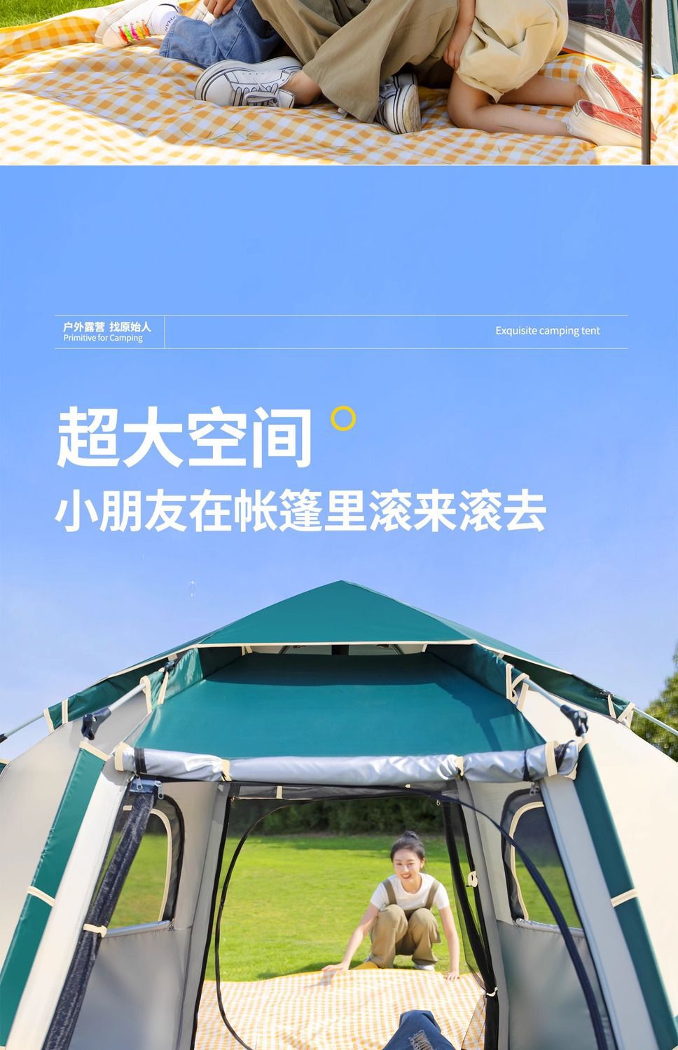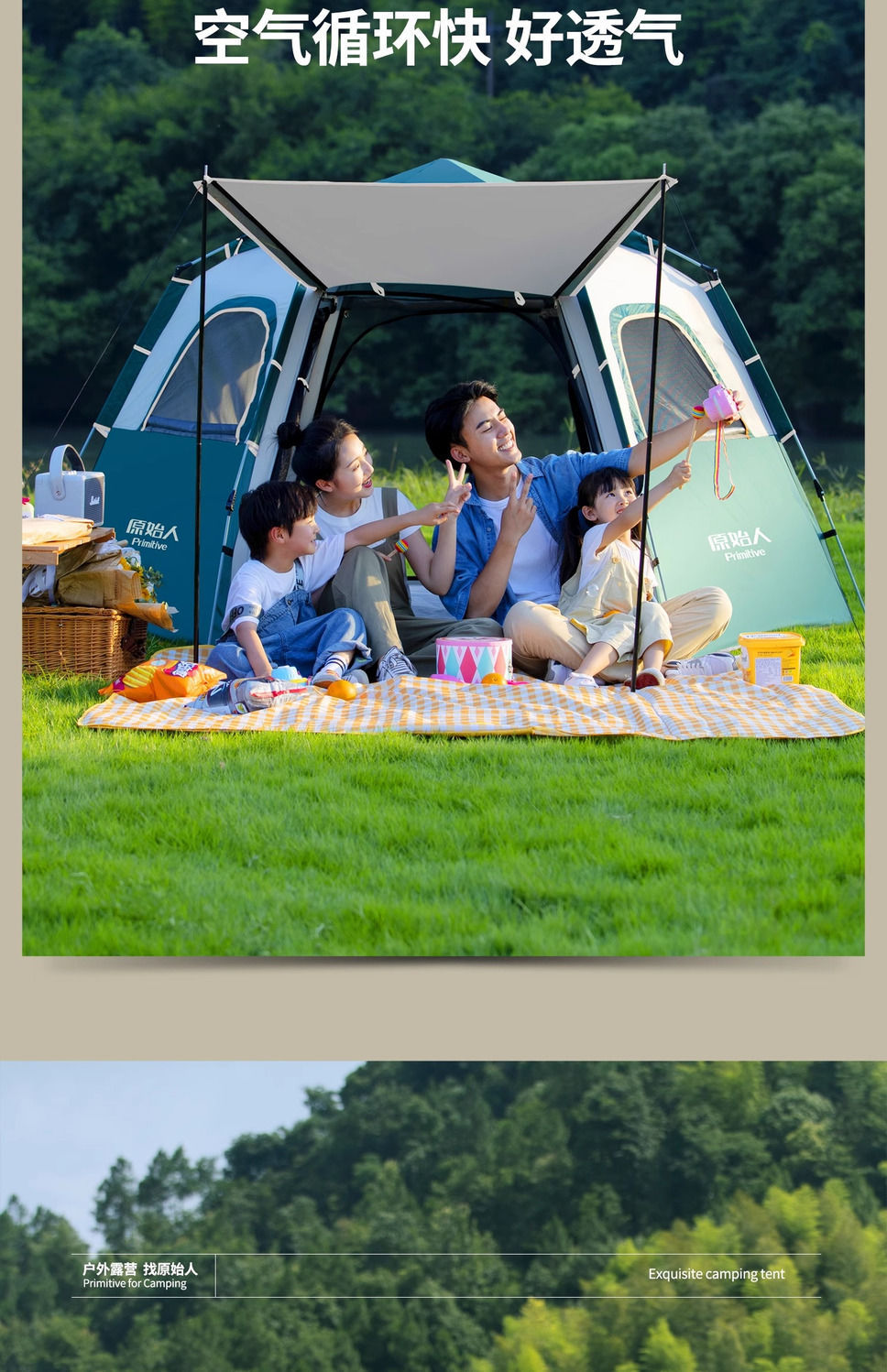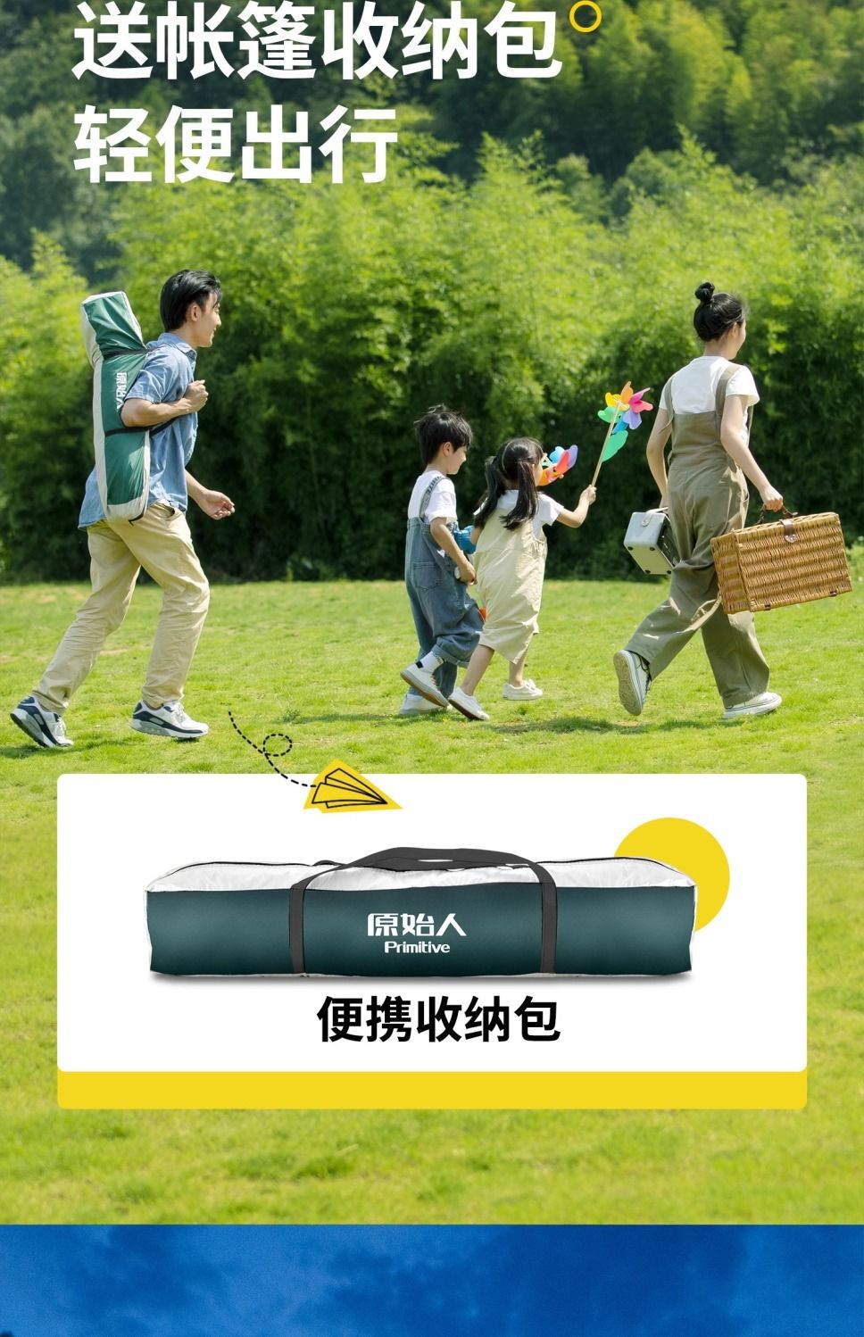 원시적 인 남자 캠핑 텐트 야외 접이식 휴대용 캠핑 밤새 비가 내리는 전체 세트의 자동 빠른 열기