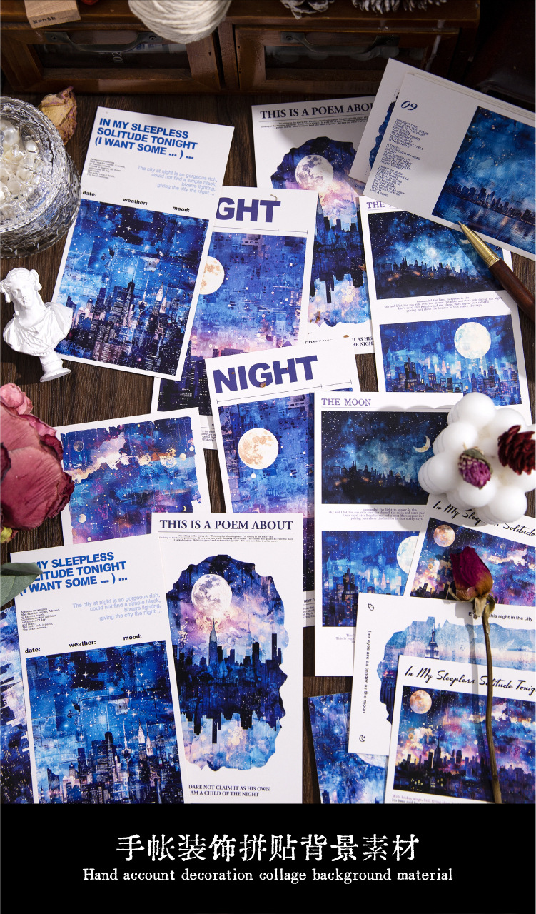멋진 환타지아 배경 소재 종이 꿈꾸는 도시의 야경 장식 베이스 핸드북 레이아웃은 메모를 쓸 수 있습니다스토어 가기