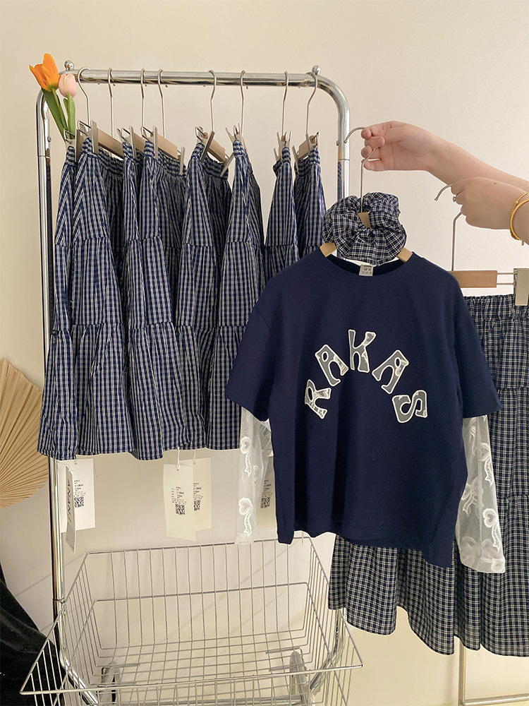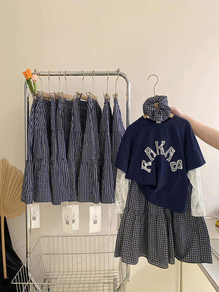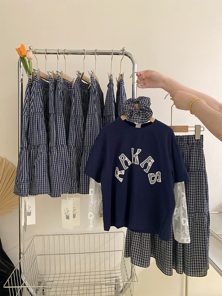 소녀상 한국식 레이스 보우 페이크 투피스 탑 2025 올매치 스티칭 플레이드 스커트 스타일리스터 투피스 세트스토어 가기