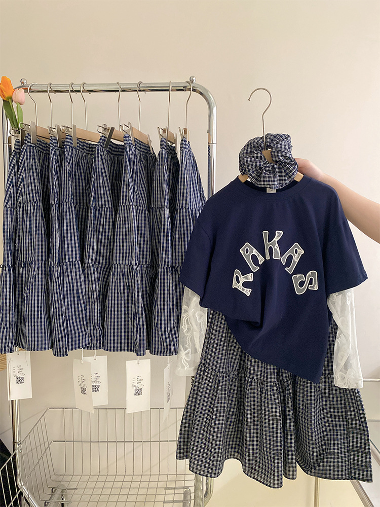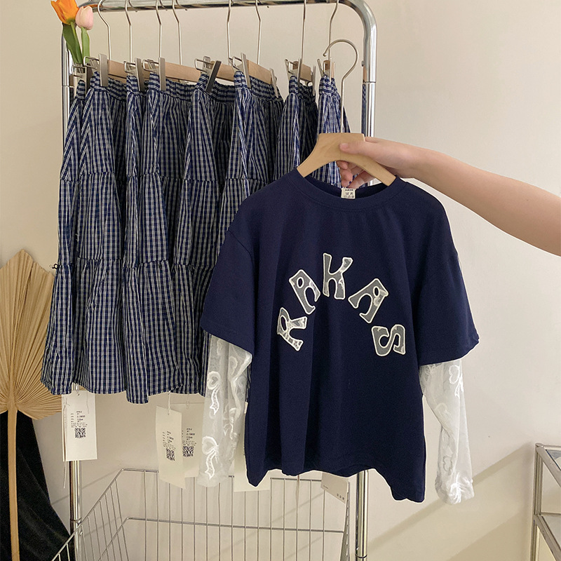 소녀상 한국식 레이스 보우 페이크 투피스 탑 2025 올매치 스티칭 플레이드 스커트 스타일리스터 투피스 세트