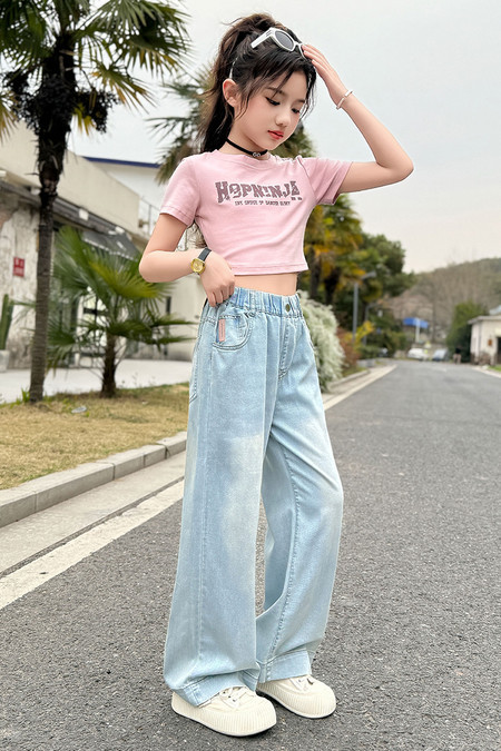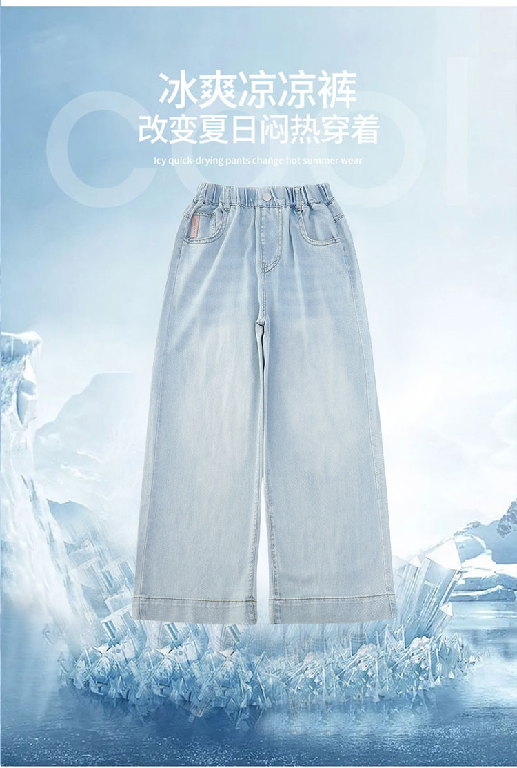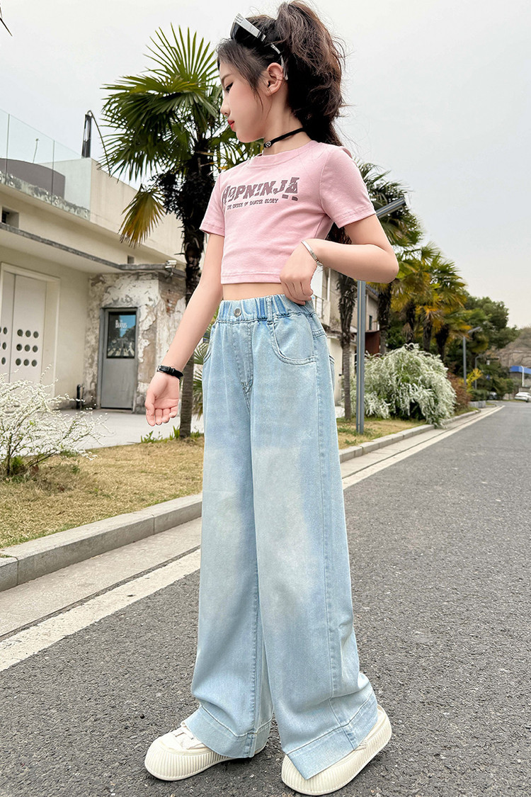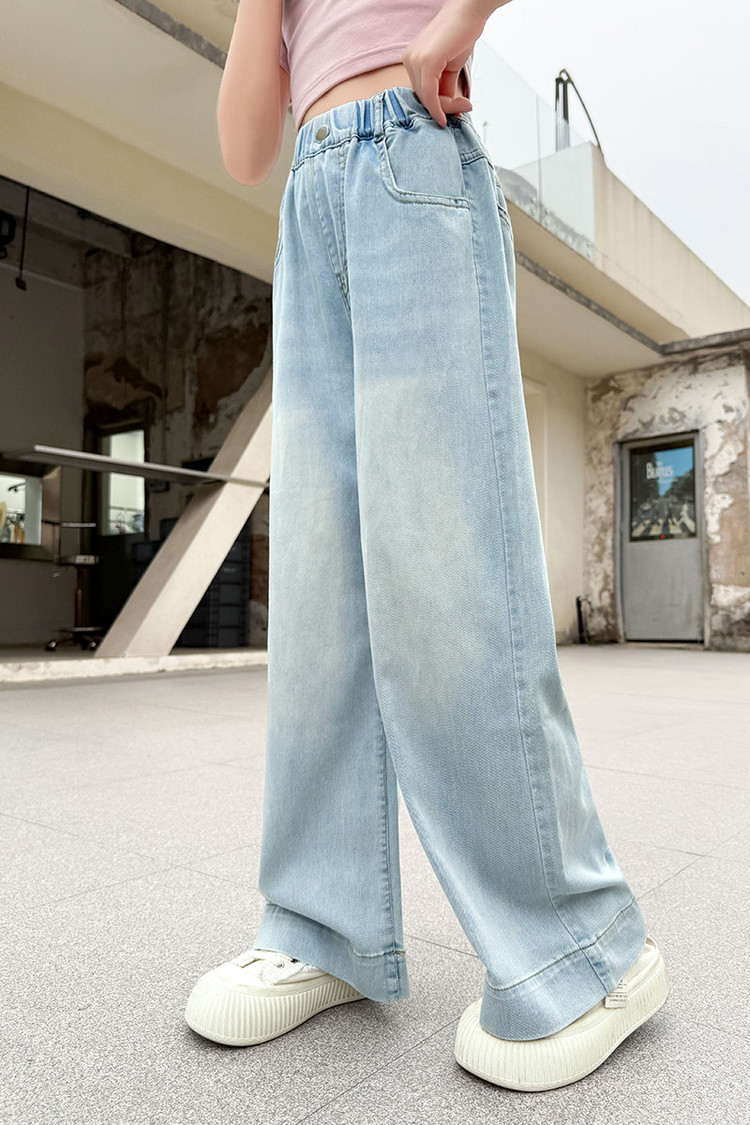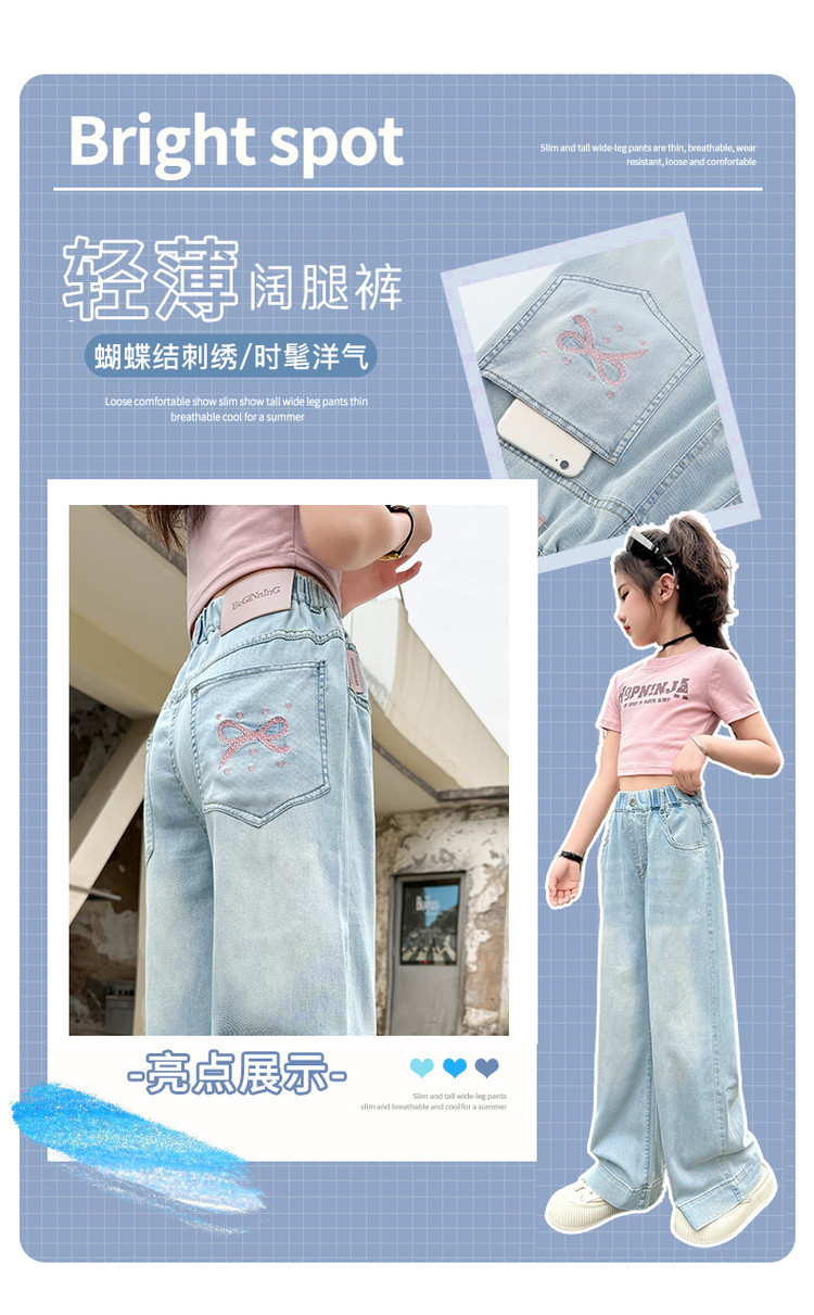 소녀 청바지 2025 새로운 여름 얇은 긴 바지 어린이 바지 소녀 느슨한 넓은 다리 바지스토어 가기