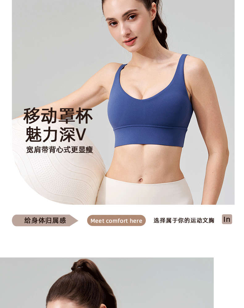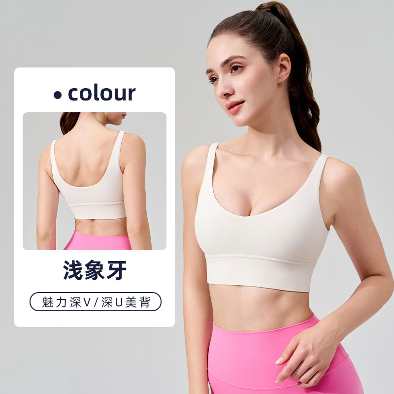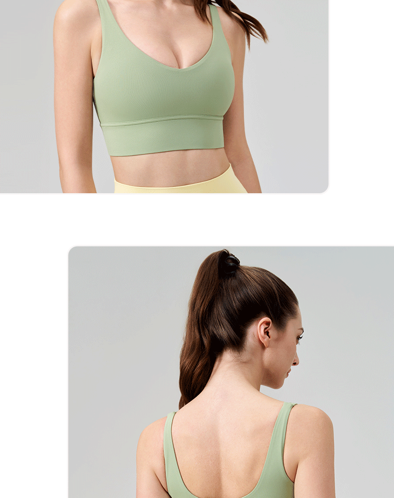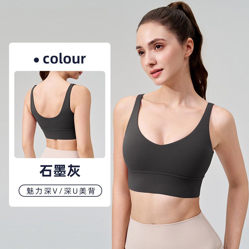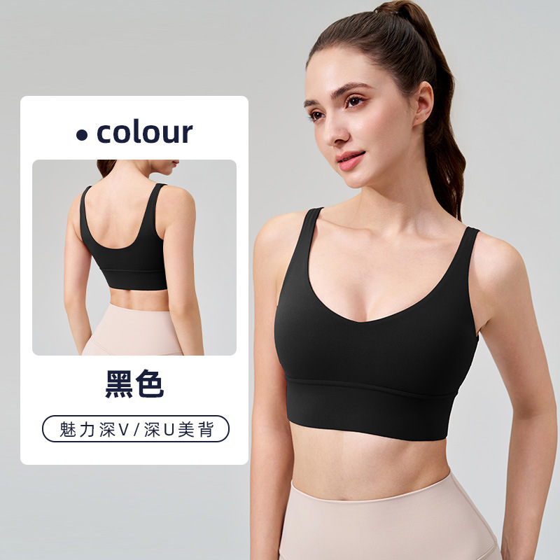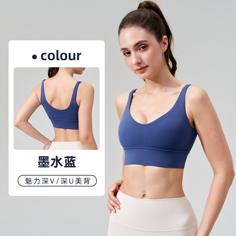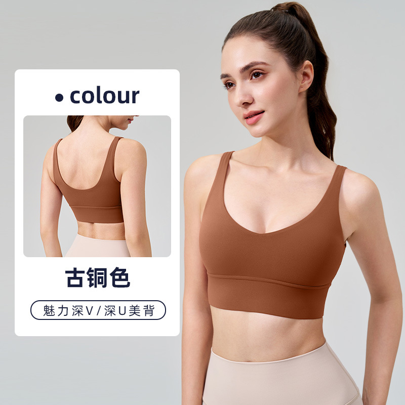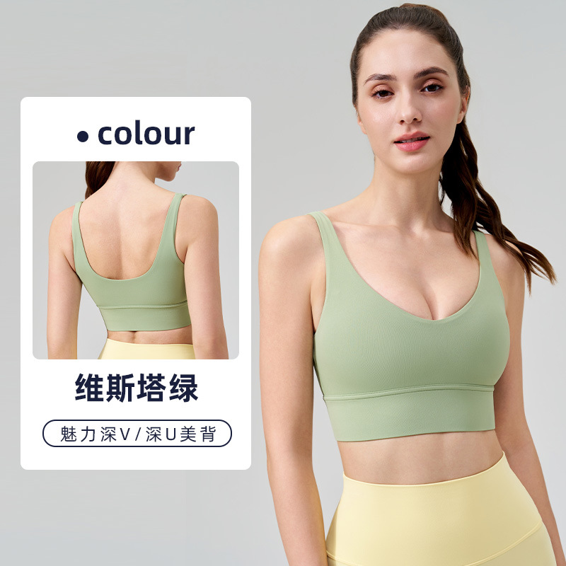 NS 벌거 벗은 편안한 스포츠 브라 참 깊은 V 가죽 요가 속옷 넓은 어깨 U-백 피트니스 조끼