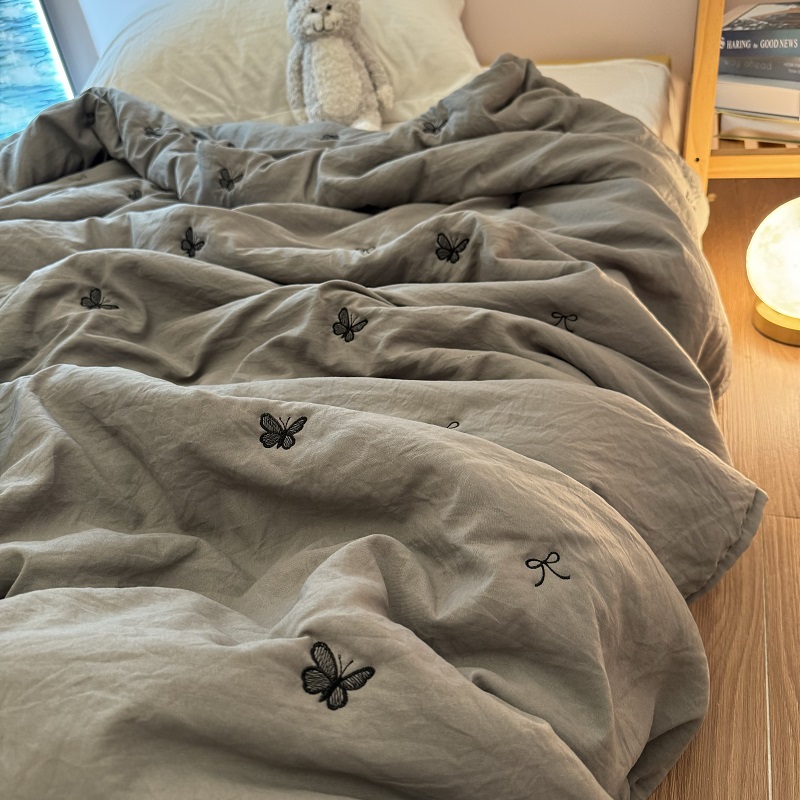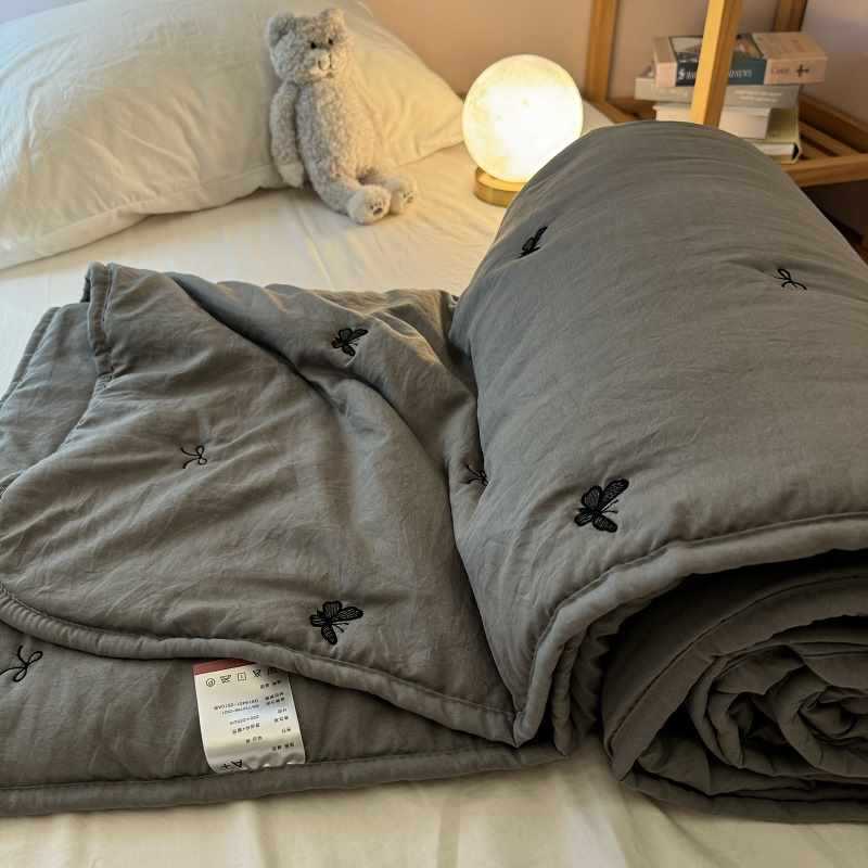 소스 인 심플 그레이 나비 자수 여름 이불 기계 세탁 가능 부드럽고 왁시한 에어컨 이불 워시 코튼 기숙사 여름