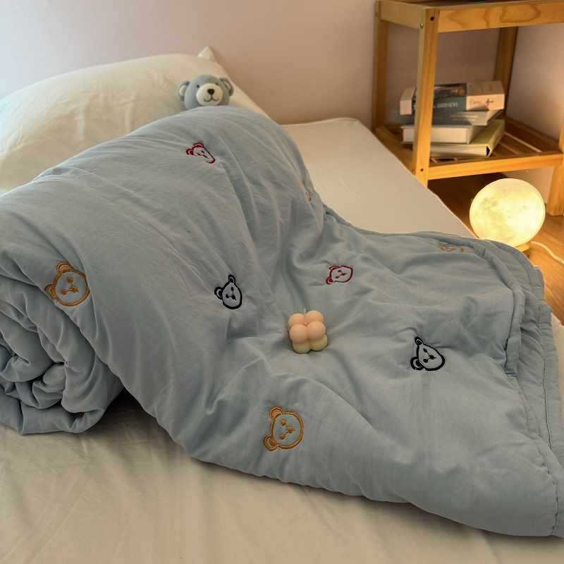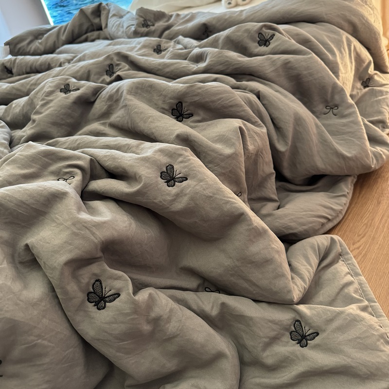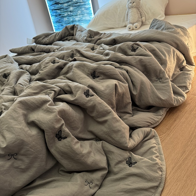 소스 인 심플 그레이 나비 자수 여름 이불 기계 세탁 가능 부드럽고 왁시한 에어컨 이불 워시 코튼 기숙사 여름스토어 가기