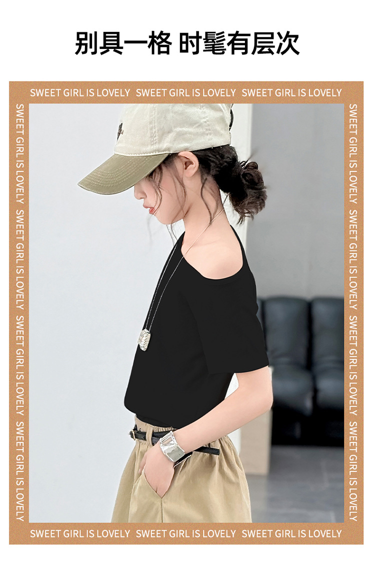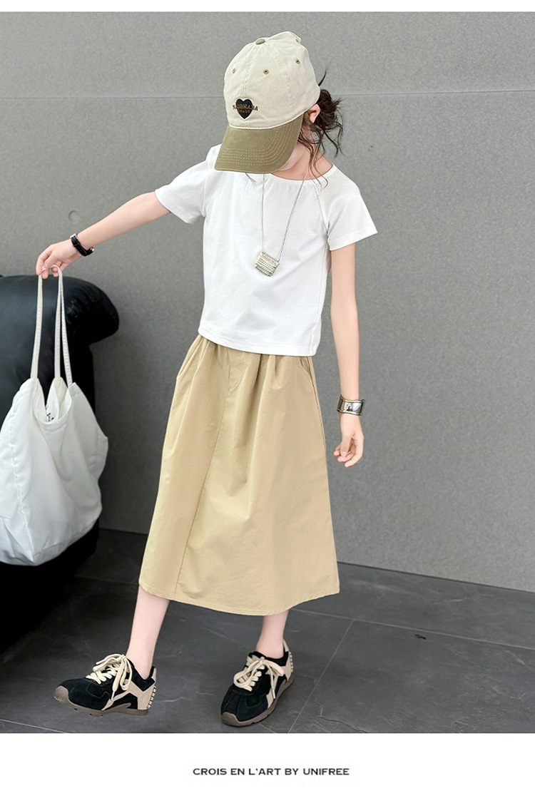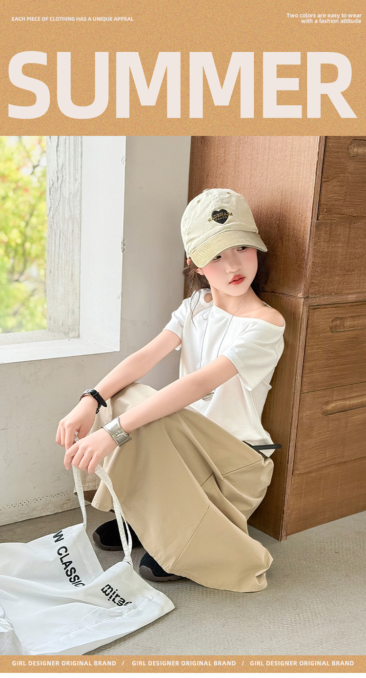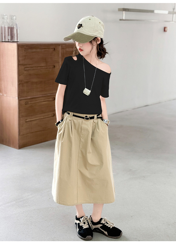 여자 여름 패션 리키 숄더 티셔츠 세트 2025 새로운 간단한 반팔 T 걸스 서양식 스트리트 스커트스토어 가기