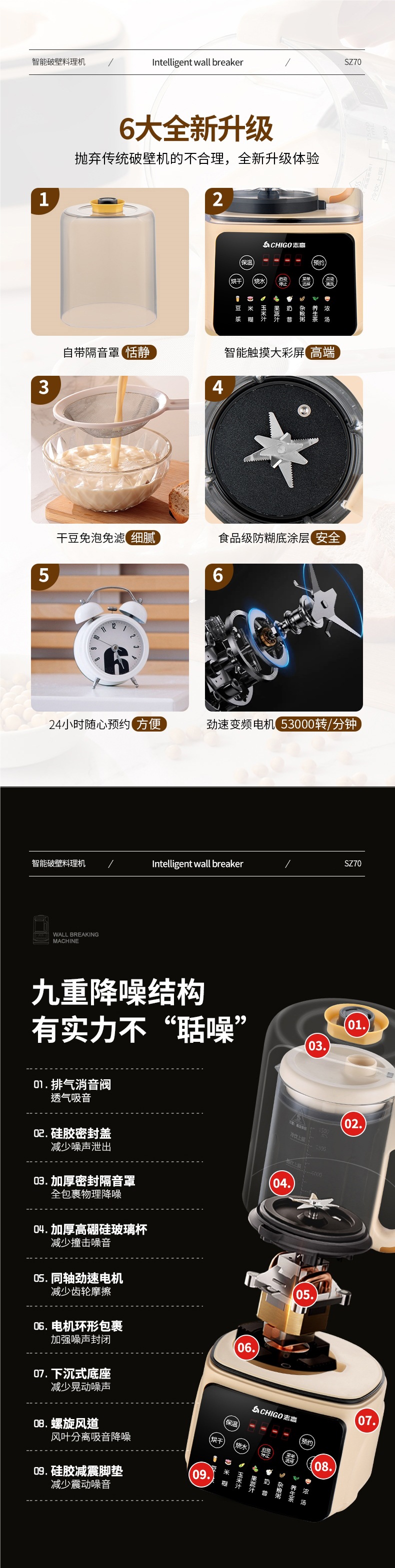 Zhigao 벽 깨는 기계 가정용 완전 자동 작은 콩 우유 기계 다기능 비 침묵 슬래그없는 식품 과즙 짜기 통합스토어 가기