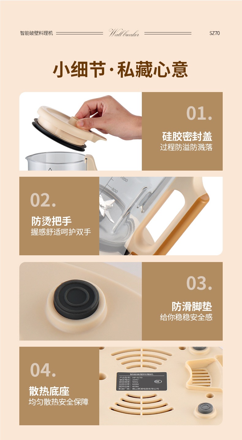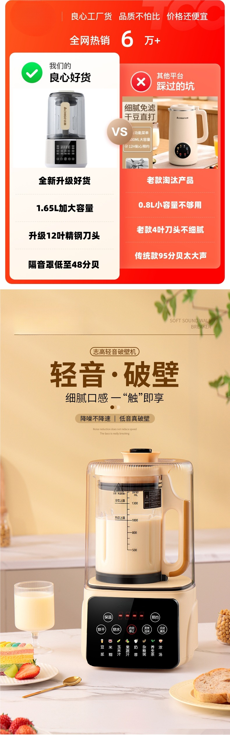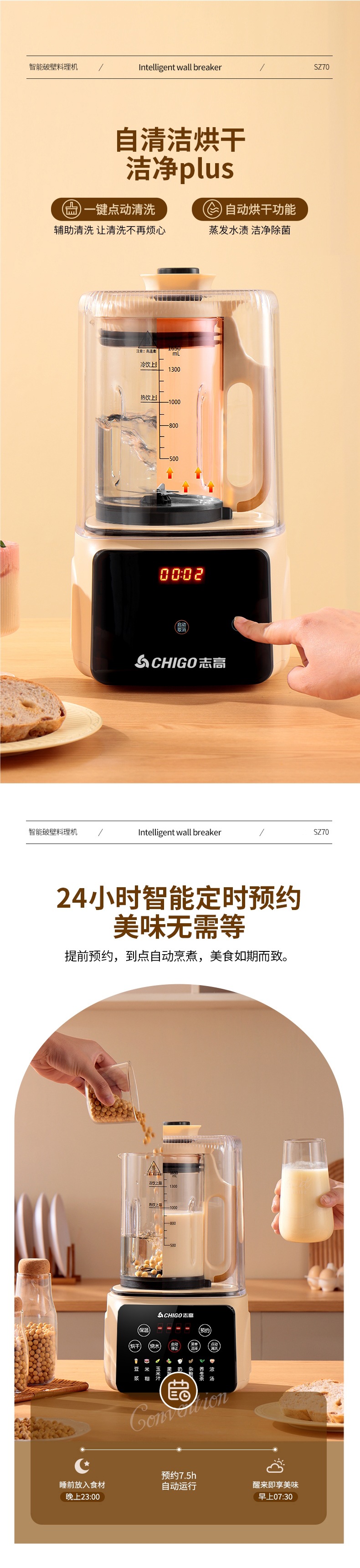 Zhigao 벽 깨는 기계 가정용 완전 자동 작은 콩 우유 기계 다기능 비 침묵 슬래그없는 식품 과즙 짜기 통합