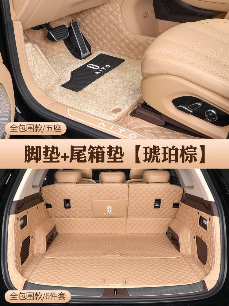• Wenjie New M7 [가죽 바닥 매트 일체형 + 테일 박스 매트 완전 밀폐형] 앰버 브라운★5석만