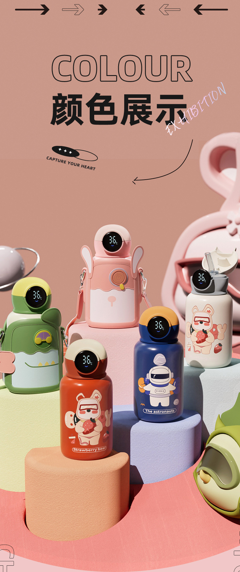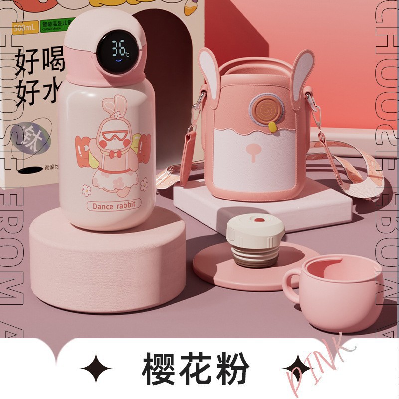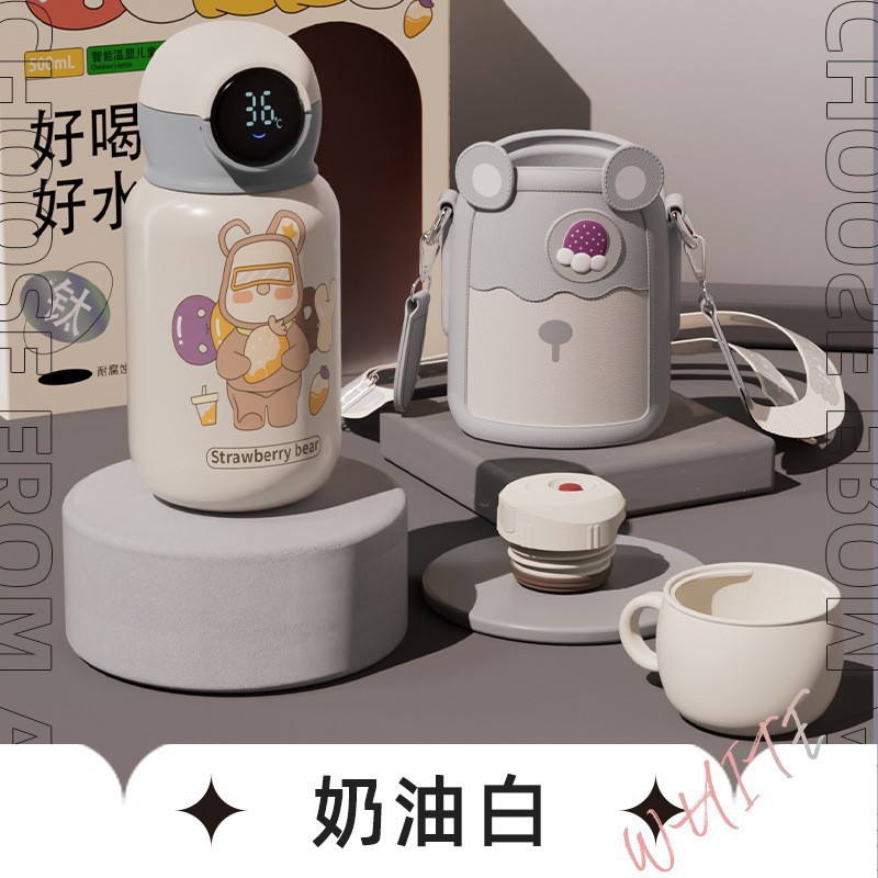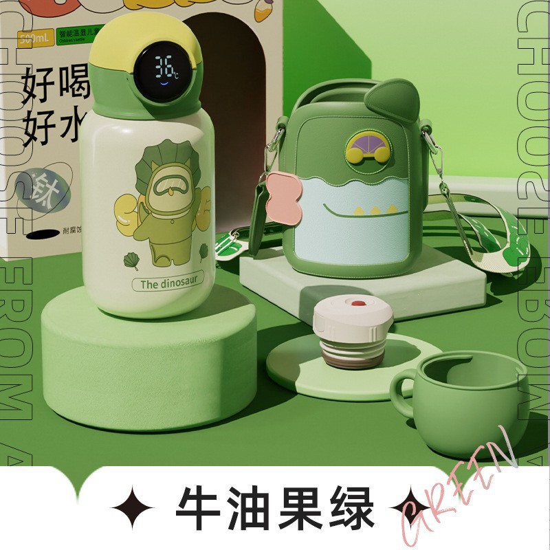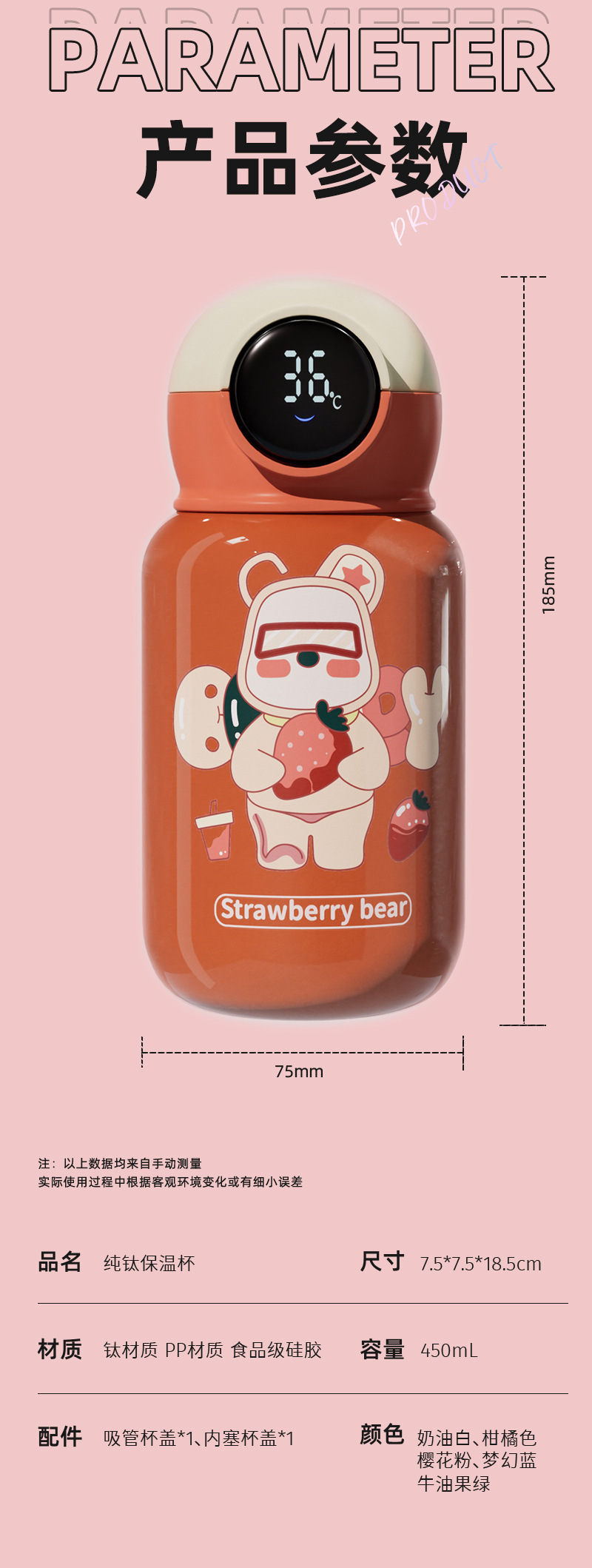 뜨거운 판매 순수 티타늄 만화 어린이 스마트 보온병 컵 밀짚 물병 유치원 아기 티타늄 컵 학생 소녀 물 컵