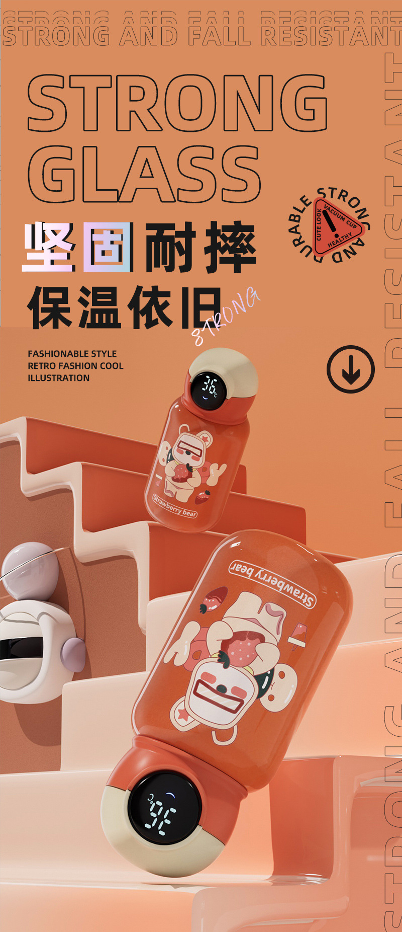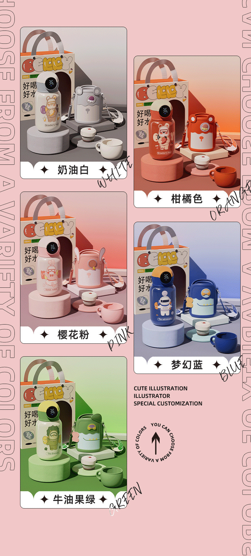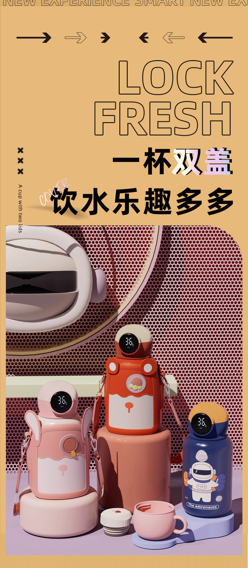 뜨거운 판매 순수 티타늄 만화 어린이 스마트 보온병 컵 밀짚 물병 유치원 아기 티타늄 컵 학생 소녀 물 컵
