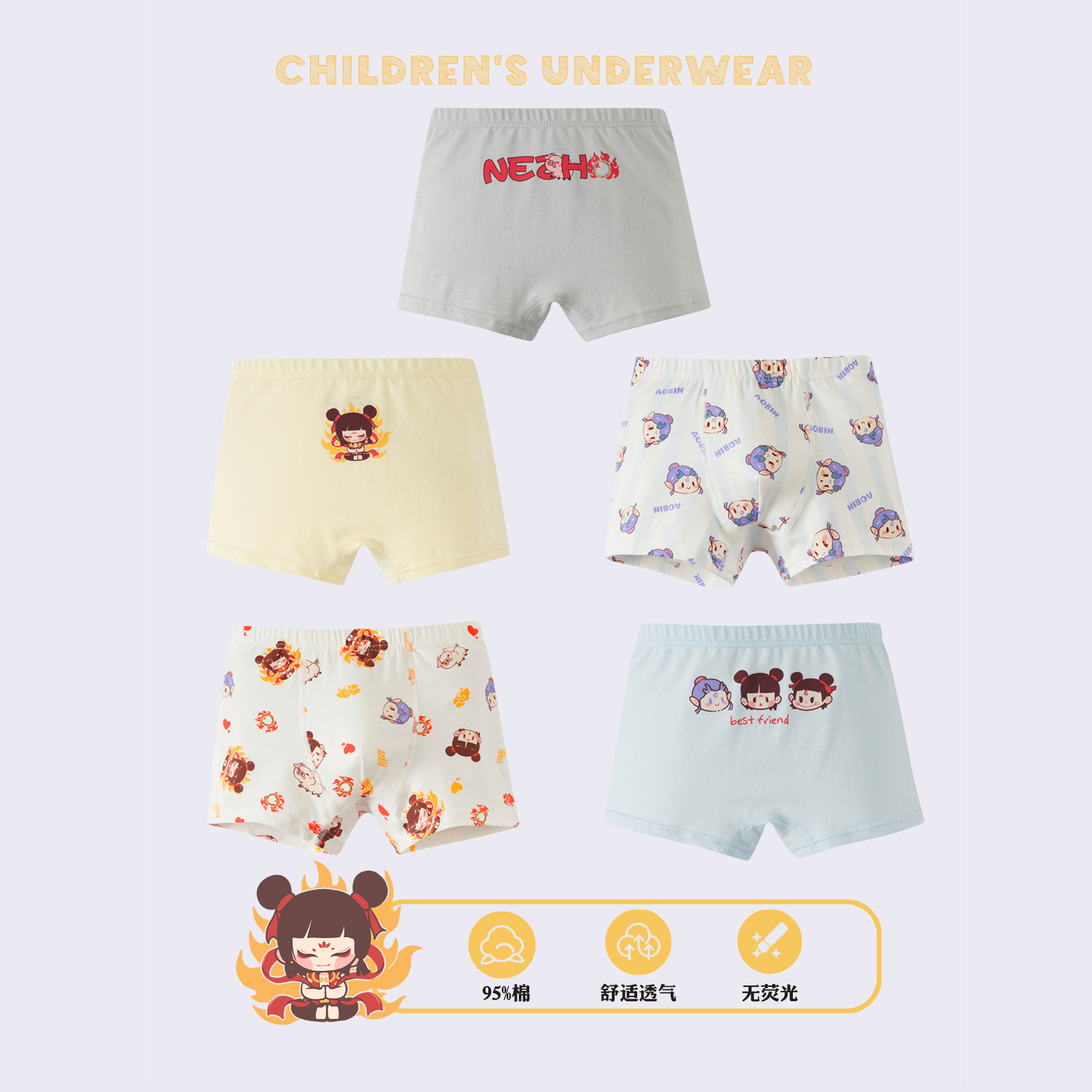 Na Zha 소년 속옷 새로운 유형의 순면 항균 만화 복서 팬티 중형 및 대형 소년 복서 안전 반바지스토어 가기