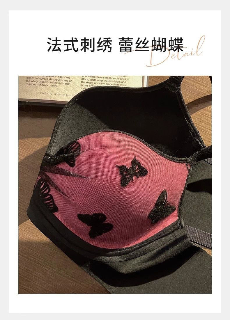프랑스 스타일 속옷 여성의 2025 새로운 폭발 자수 레이스 푸시 업 추적없는 섹시한 달콤한 매운 스타일 반지없는 브래지어