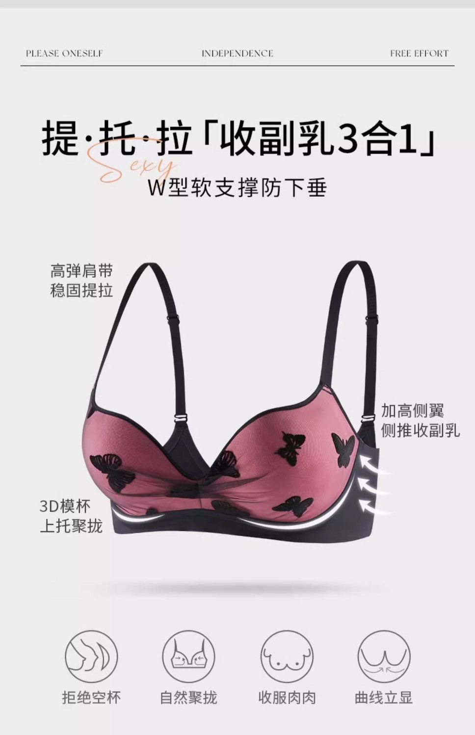 프랑스 스타일 속옷 여성의 2025 새로운 폭발 자수 레이스 푸시 업 추적없는 섹시한 달콤한 매운 스타일 반지없는 브래지어스토어 가기