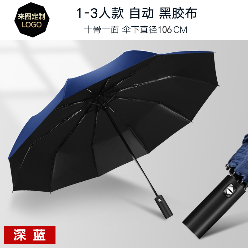• 10본 나무 손잡이 자동우산 다크블루 [선물박스 포함]