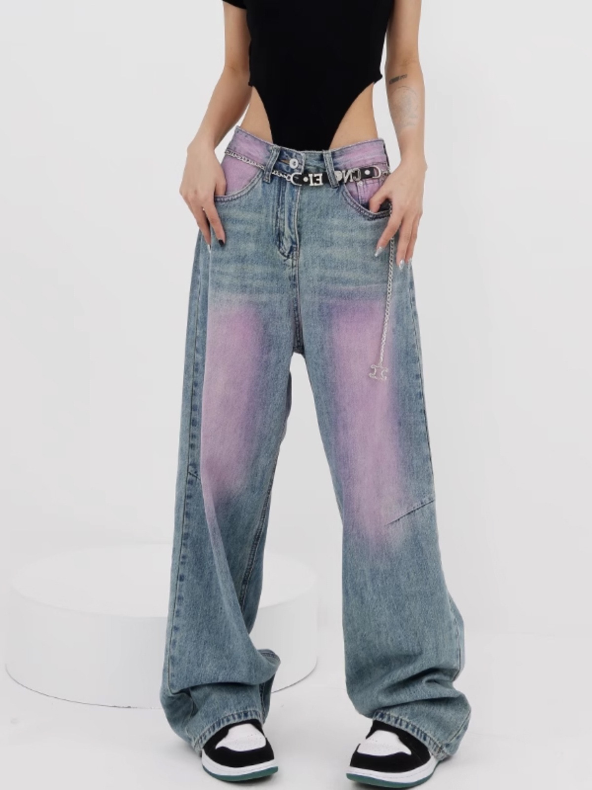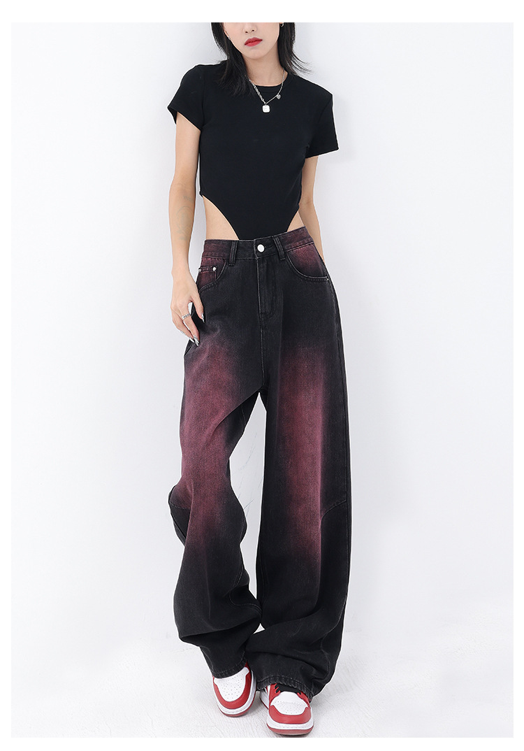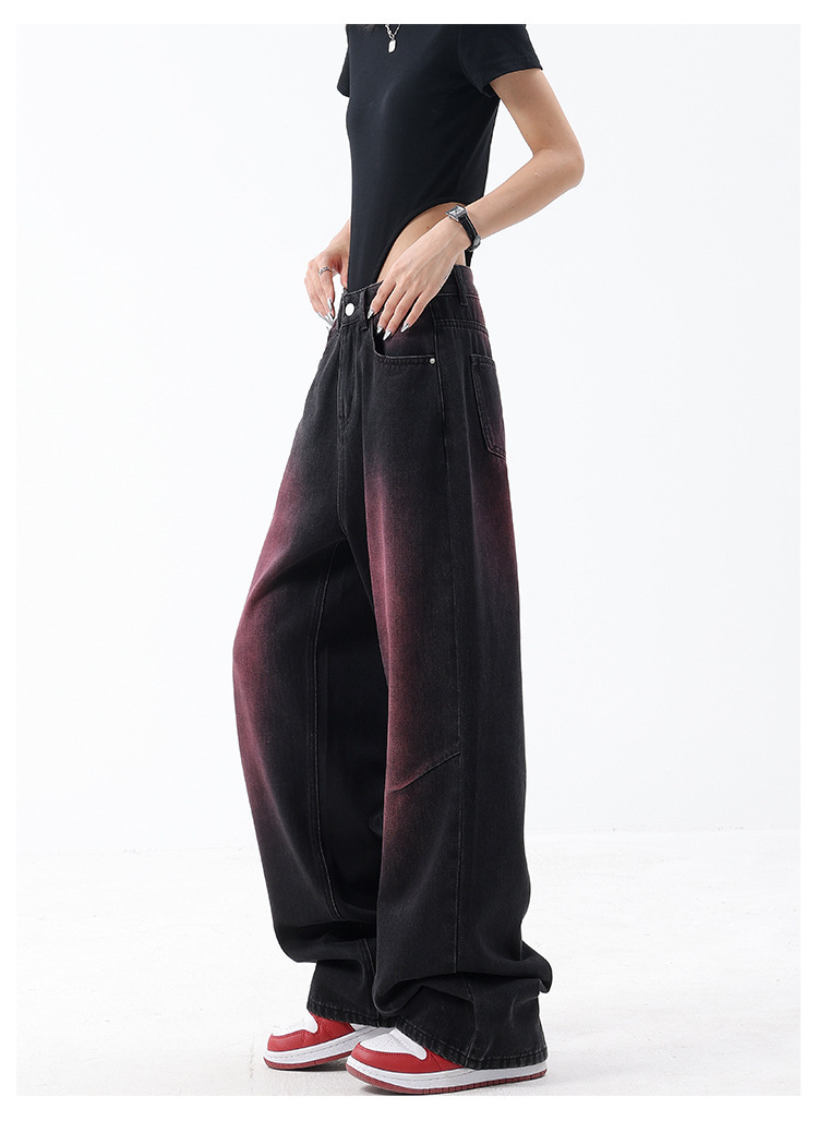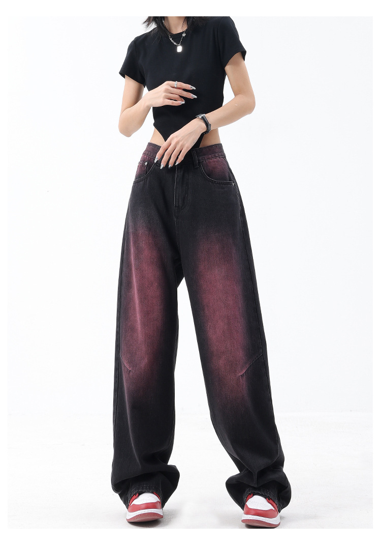2023 봄과 여름 새로운 낙서 빨 청바지 여성용 복고풍 디자인 센스 스트레이트 튜브 와이드 레그 바지 바지 스트리트 스타일스토어 가기