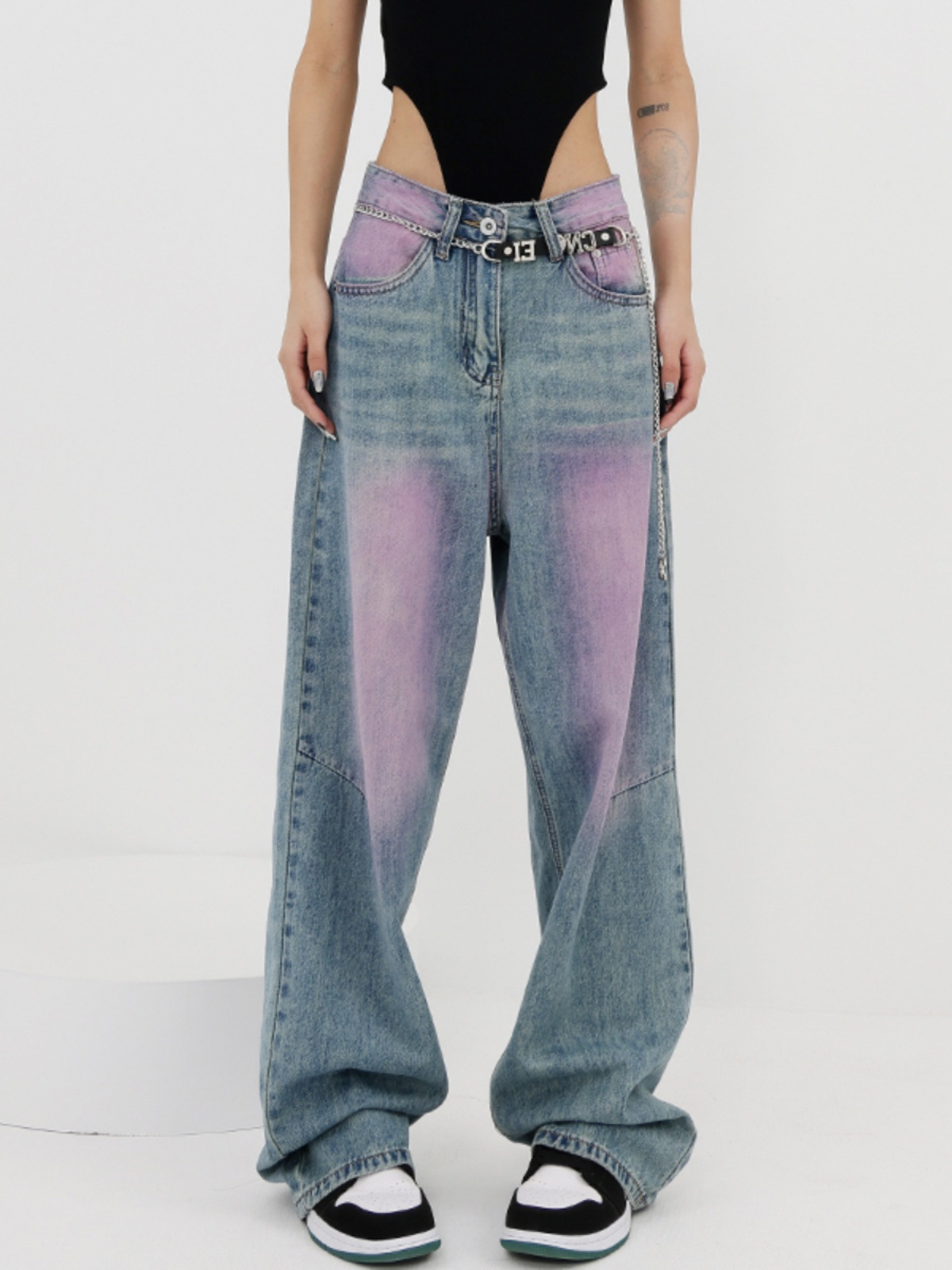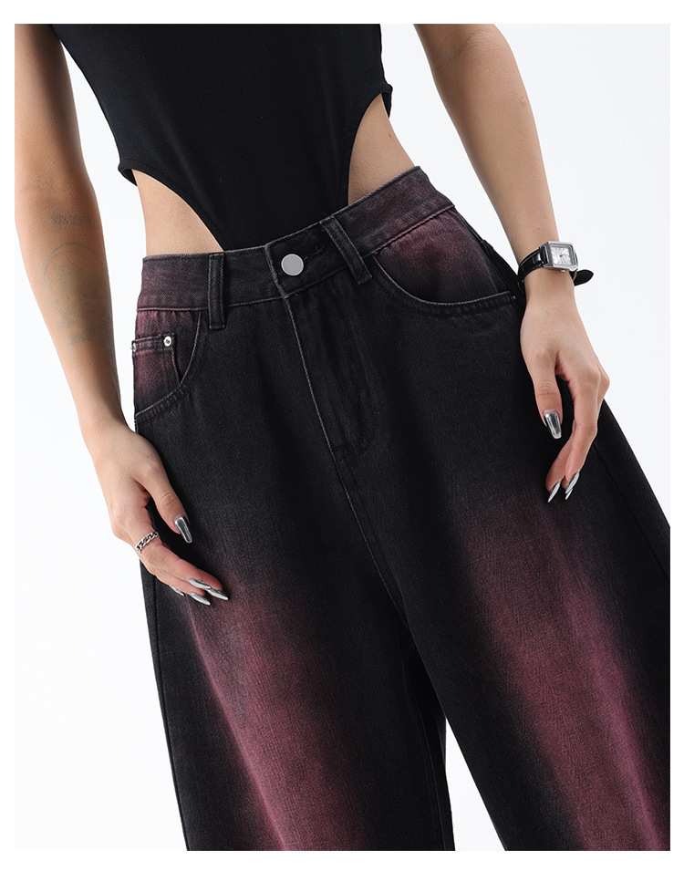 2023 봄과 여름 새로운 낙서 빨 청바지 여성용 복고풍 디자인 센스 스트레이트 튜브 와이드 레그 바지 바지 스트리트 스타일