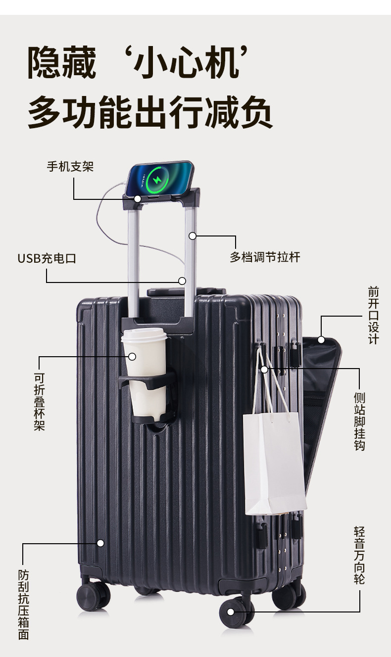 전면 오픈 뚜껑 수하물 케이스 다기능 수하물 케이스 비즈니스 가방 유니버설 휠 등산 상자 학생 암호 상자스토어 가기