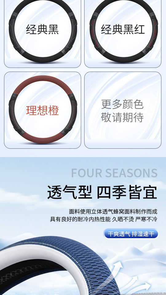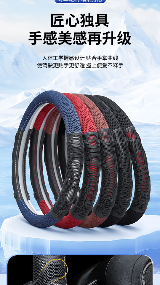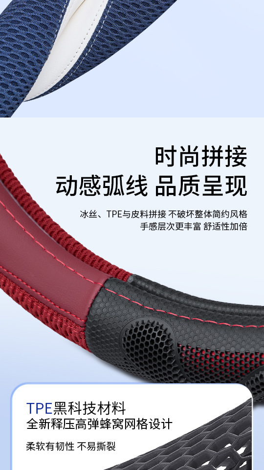 국경을 넘는 새로운 사계절 GM 수천 개의 모델을 사용할 수있는 허니컴 초박형 마사지 아이스 실크 땀 흡수성 통기성 스티어링 휠 커버
