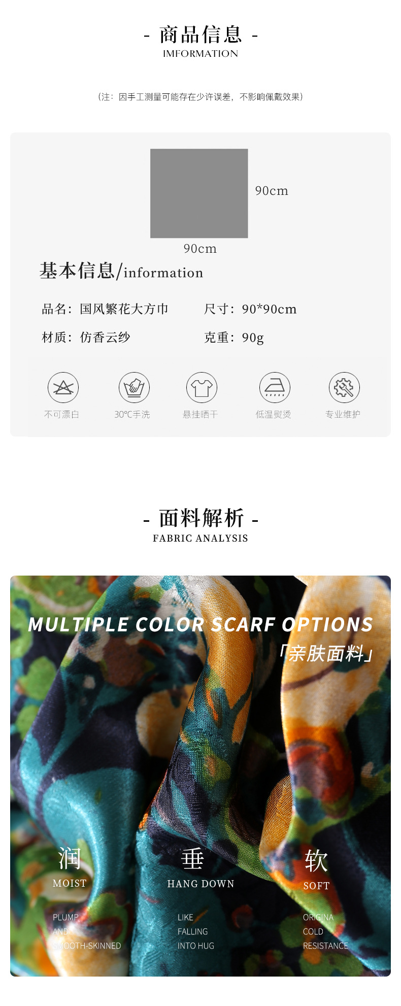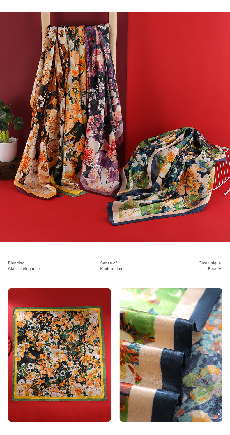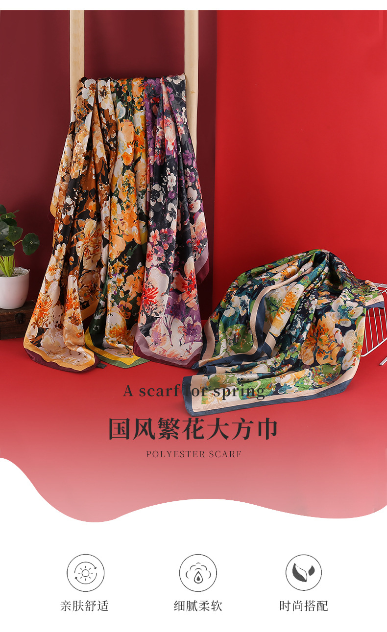 브로케이드 모조 향기로운 구름 거즈 스카프와 같은 꽃 여성 인 스타일 실키 장식 전문 스카프 90 스퀘어 스카프 숄 조수 도매
