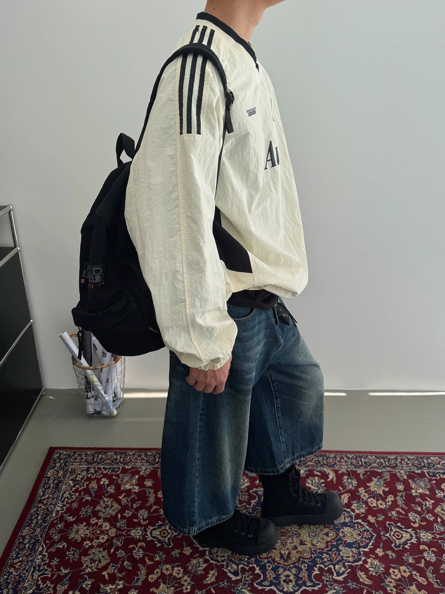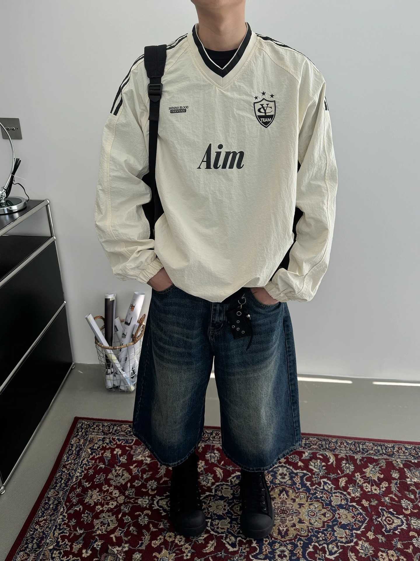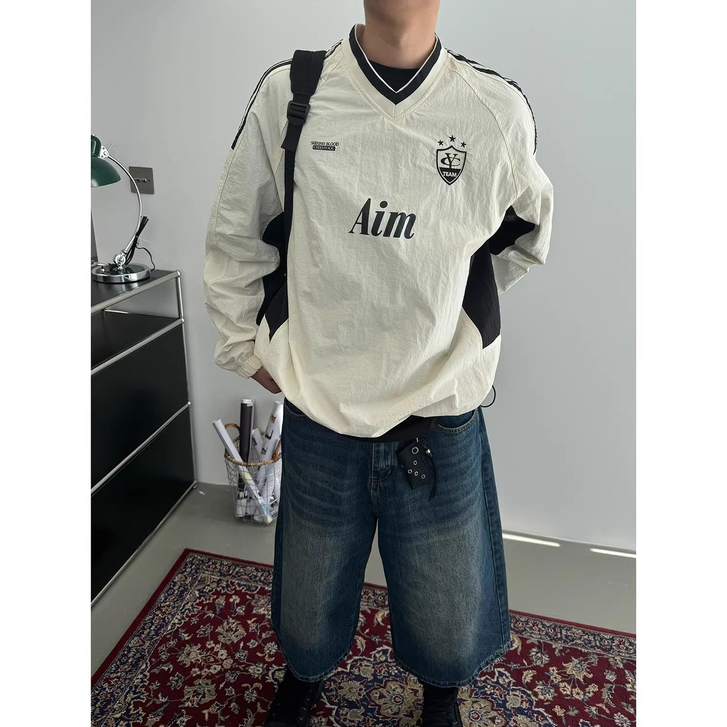 아메리칸 스타일 레트로 인쇄 된 땀 남자의 봄과 가을 2025 한국 스타일 새로운 라운드 넥 루즈 탑 chic 홍콩 패션스토어 가기