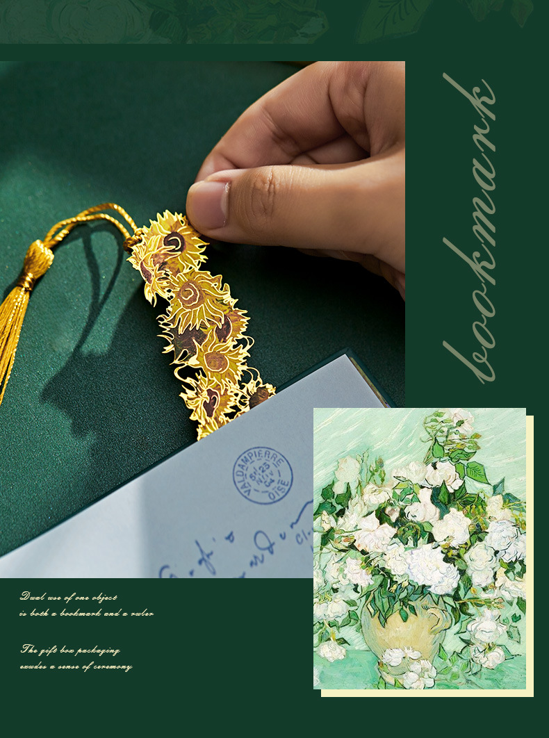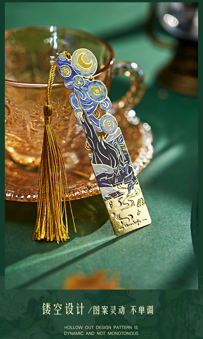 빈티지 반 고흐 유화 금속 북마크 높은 색상 가치 할로우 클래식 크리에이티브 기념품 학생상 졸업 선물