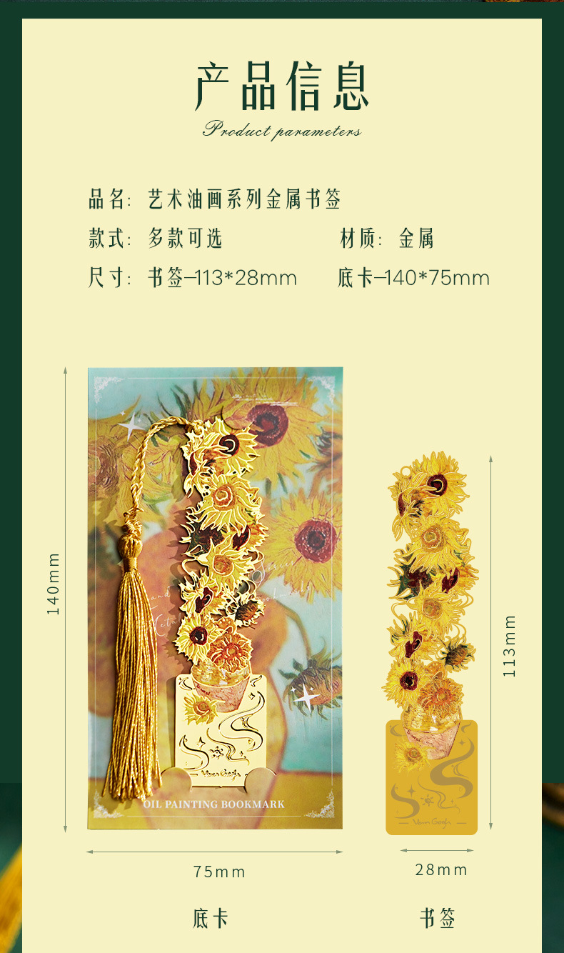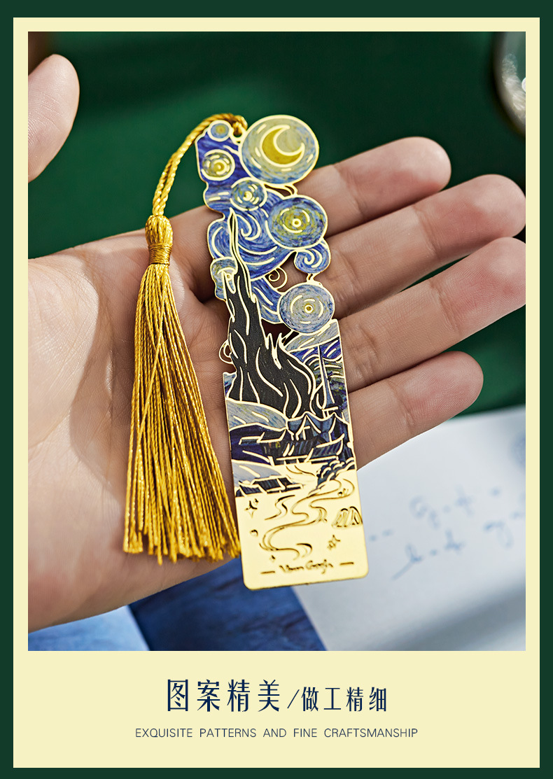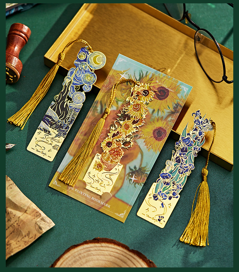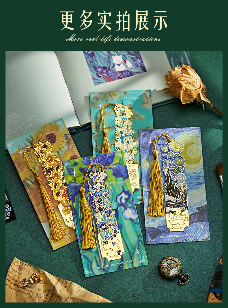 빈티지 반 고흐 유화 금속 북마크 높은 색상 가치 할로우 클래식 크리에이티브 기념품 학생상 졸업 선물스토어 가기
