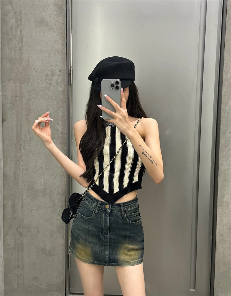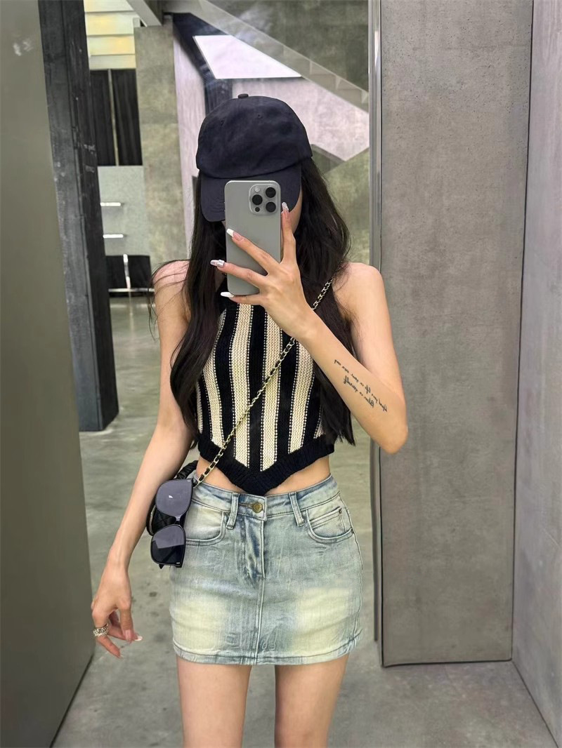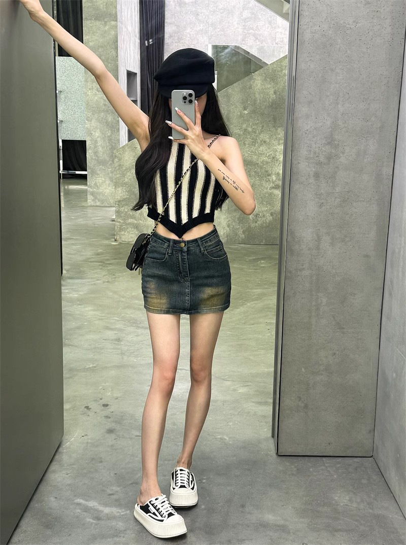 사랑의 주머니 뜨거운 소녀 빈티지 데님 스커트 여성 2024 년 여름 새로운 한국식 하이 웨이스트 A-라인 스커트