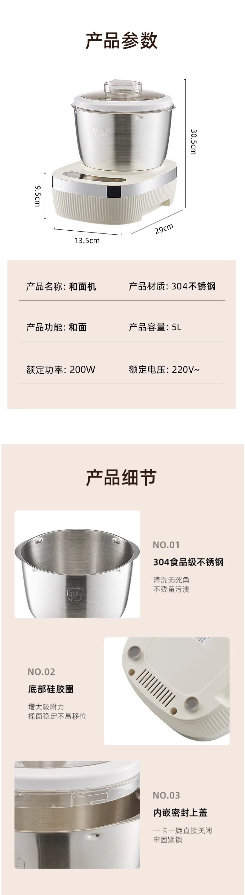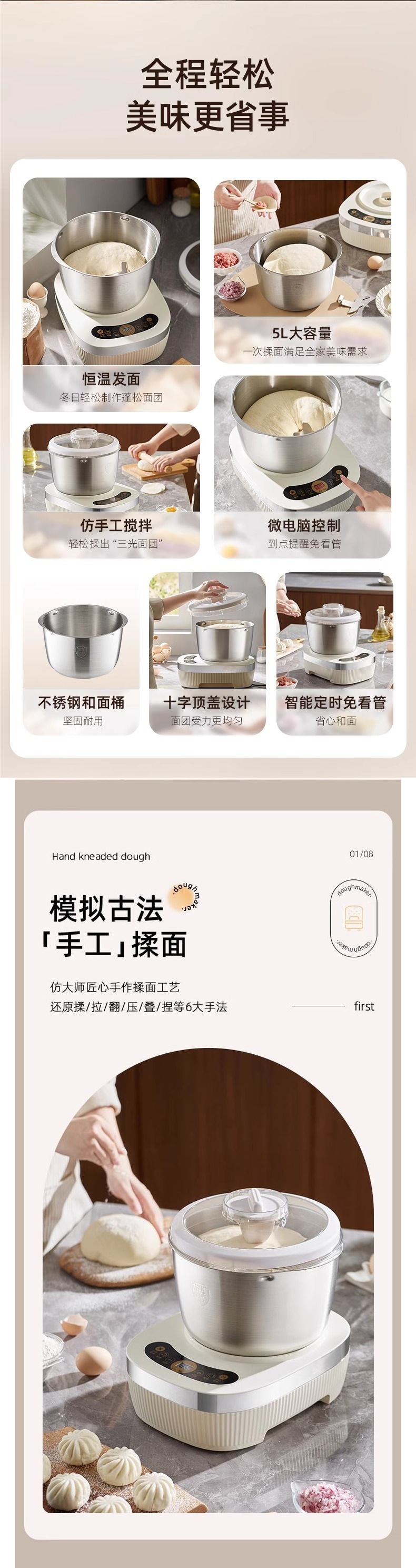 • 5L 용량(순동 모터 + 자동 반죽 반죽 및 항온 반죽)