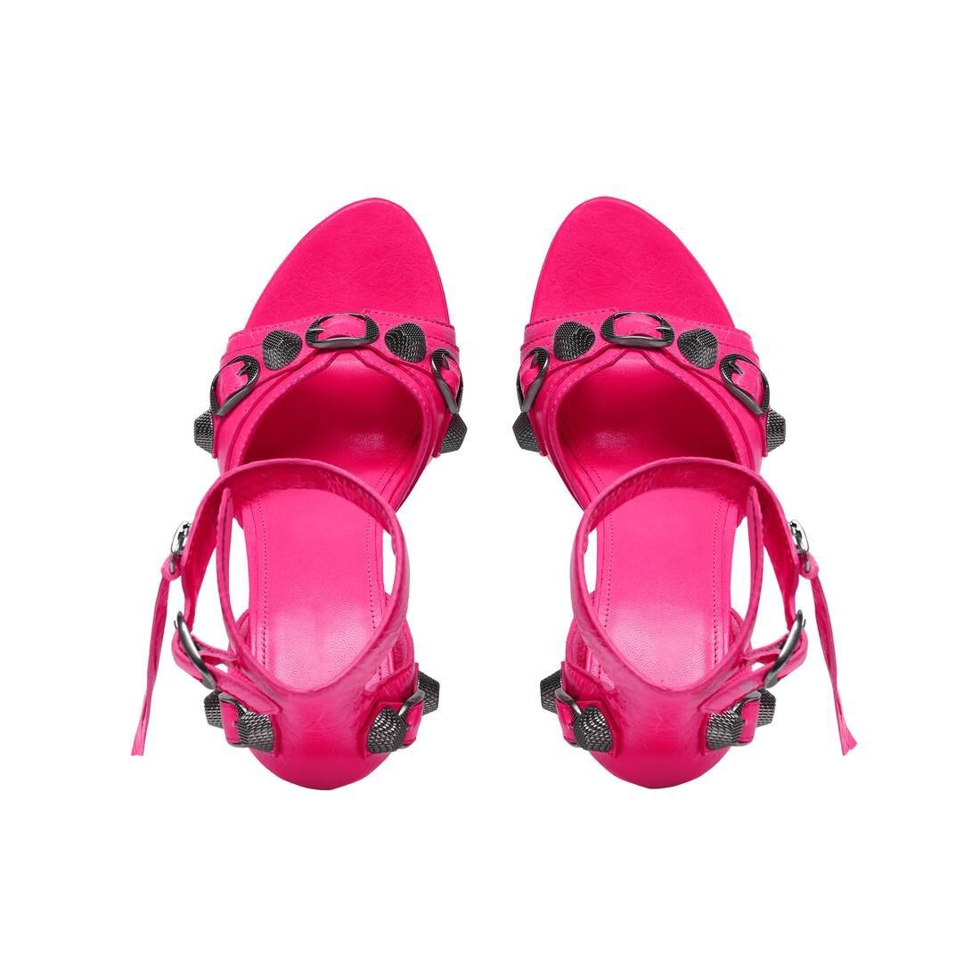 리벳 하이힐 밝은 핑크 형광 컬러 하이힐 샌들 유럽과 미국의 하이힐 제조 업체스토어 가기