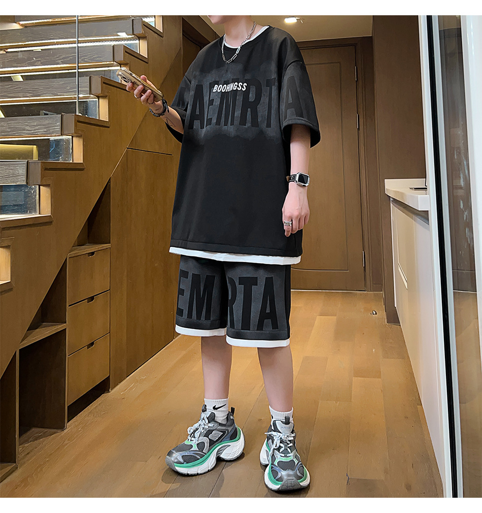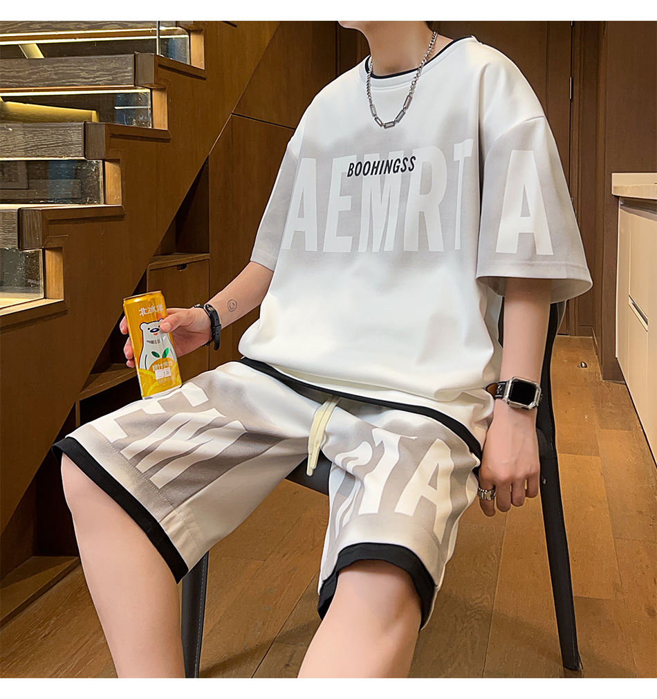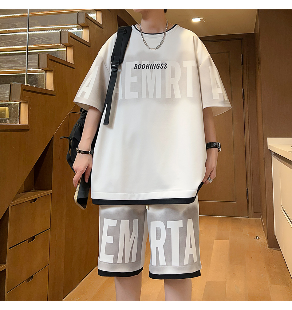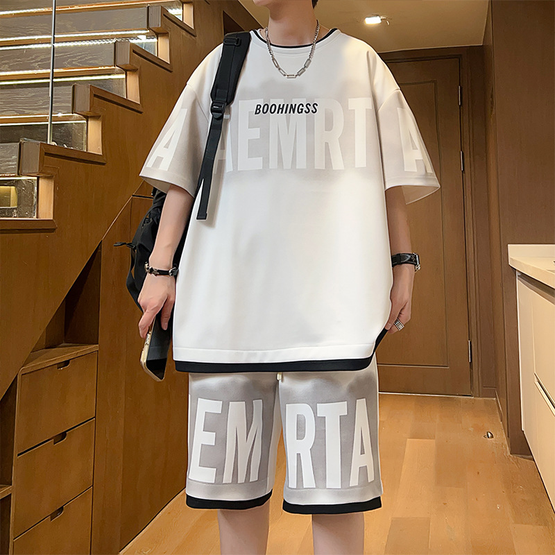 캐주얼 스포츠 세트 남자 여름 얇은 느슨한 커플 반팔 티셔츠, 잘 생긴 남자 반바지 투피스 세트