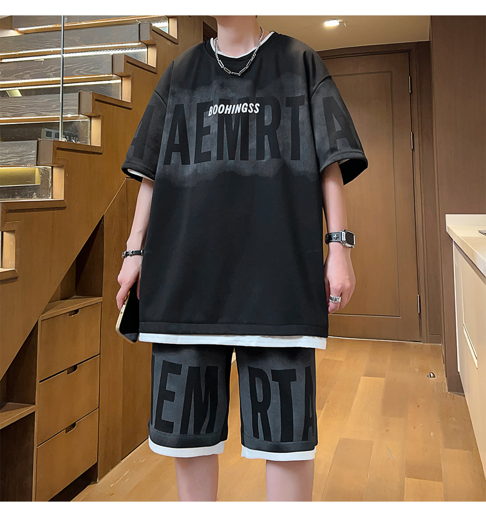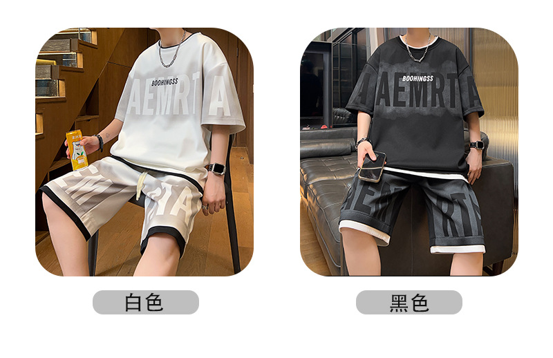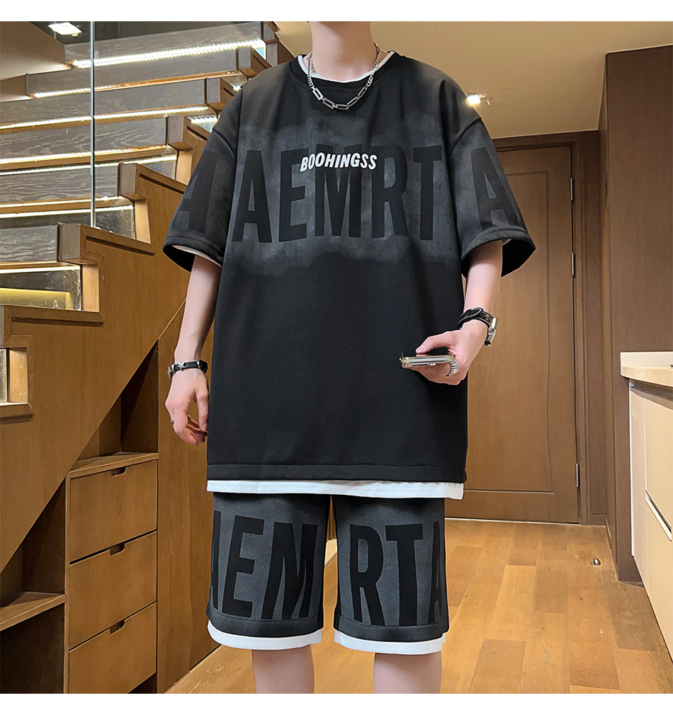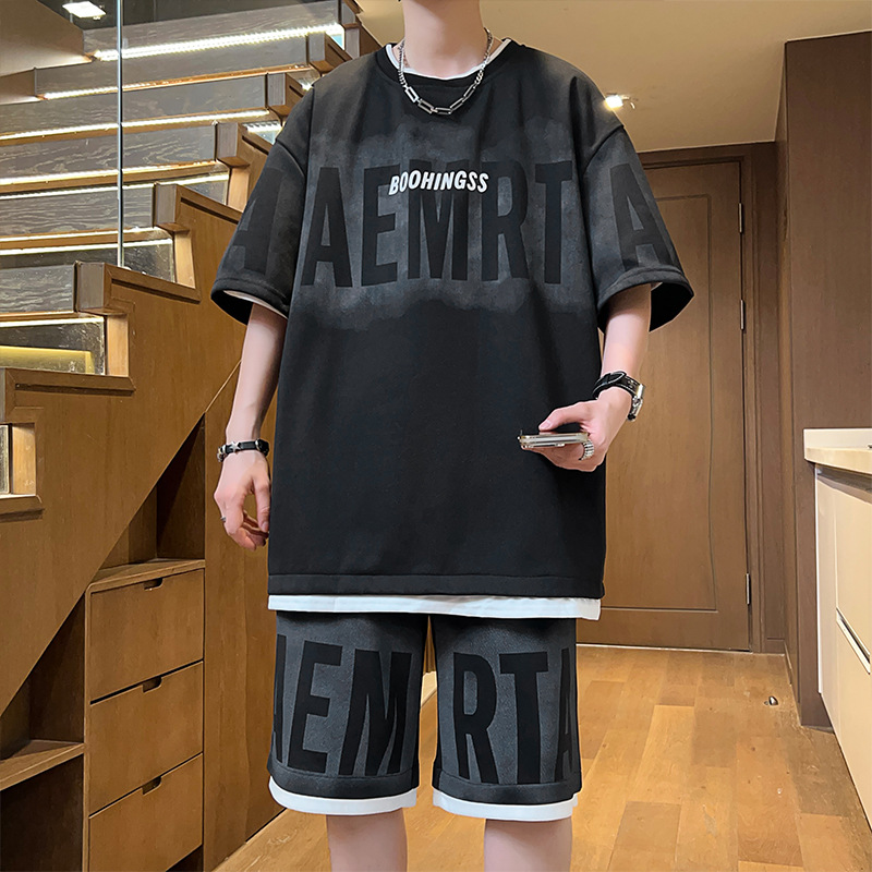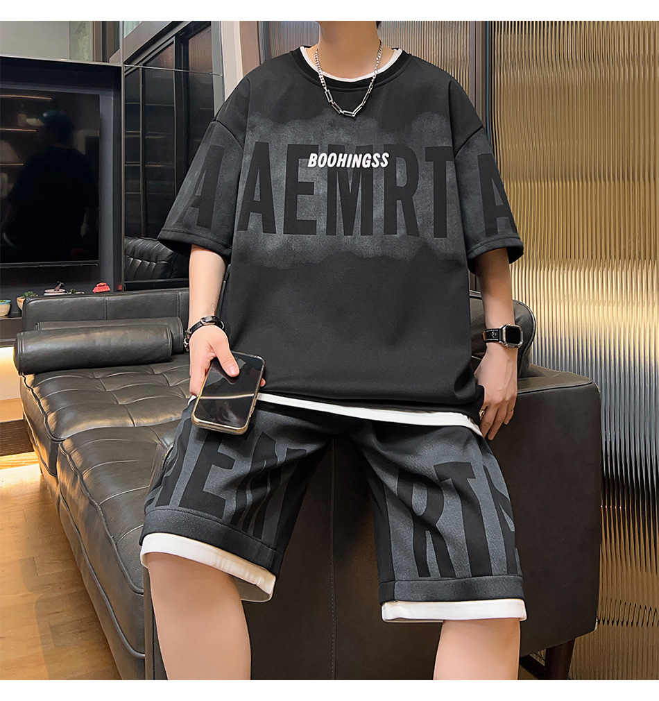 캐주얼 스포츠 세트 남자 여름 얇은 느슨한 커플 반팔 티셔츠, 잘 생긴 남자 반바지 투피스 세트