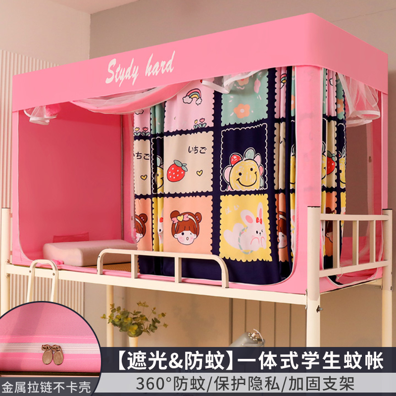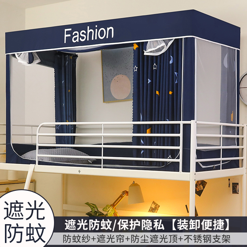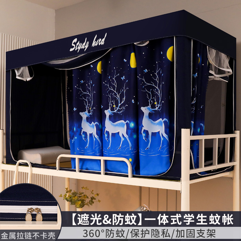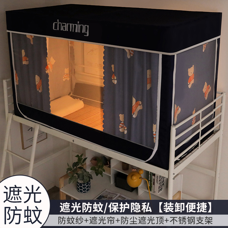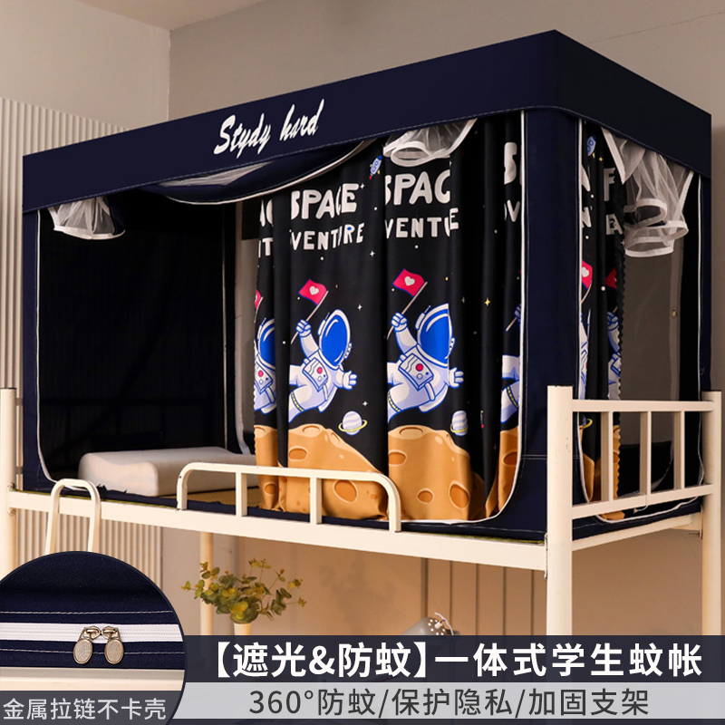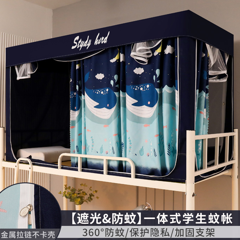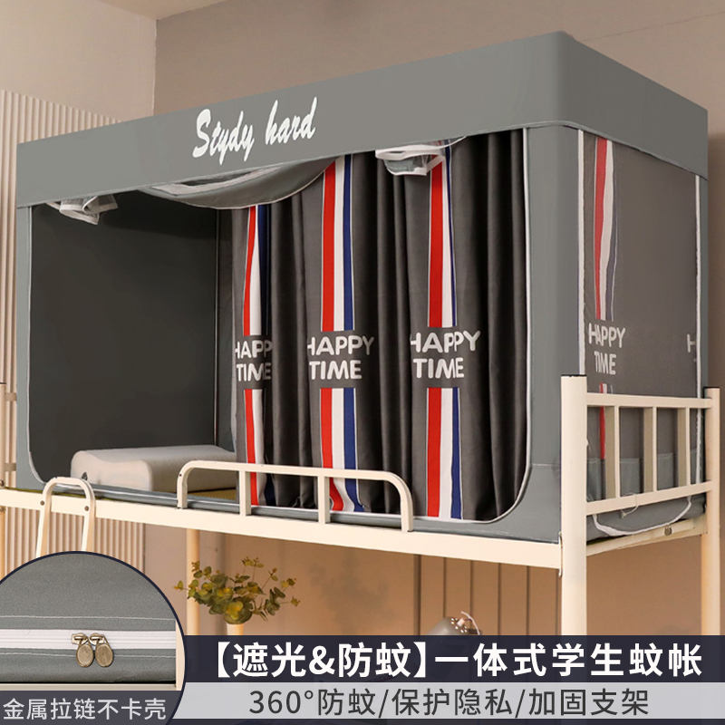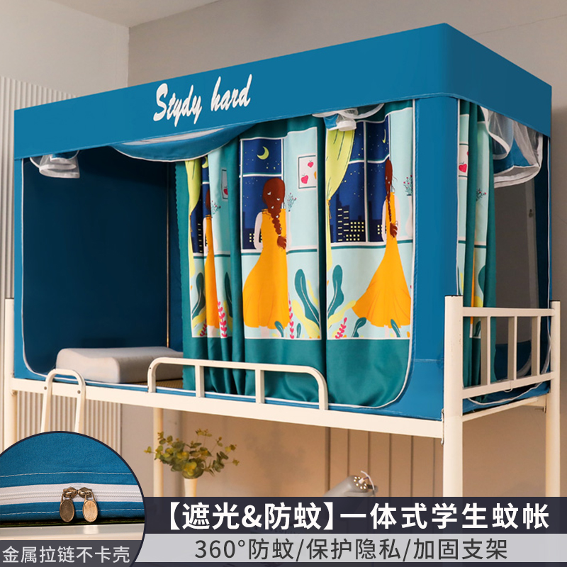 모기장 학생 기숙사 침대 커튼 일체형 지지대 포함 상단 및 하단 지퍼 유형 범용 차광 싱글 완전 밀폐형스토어 가기