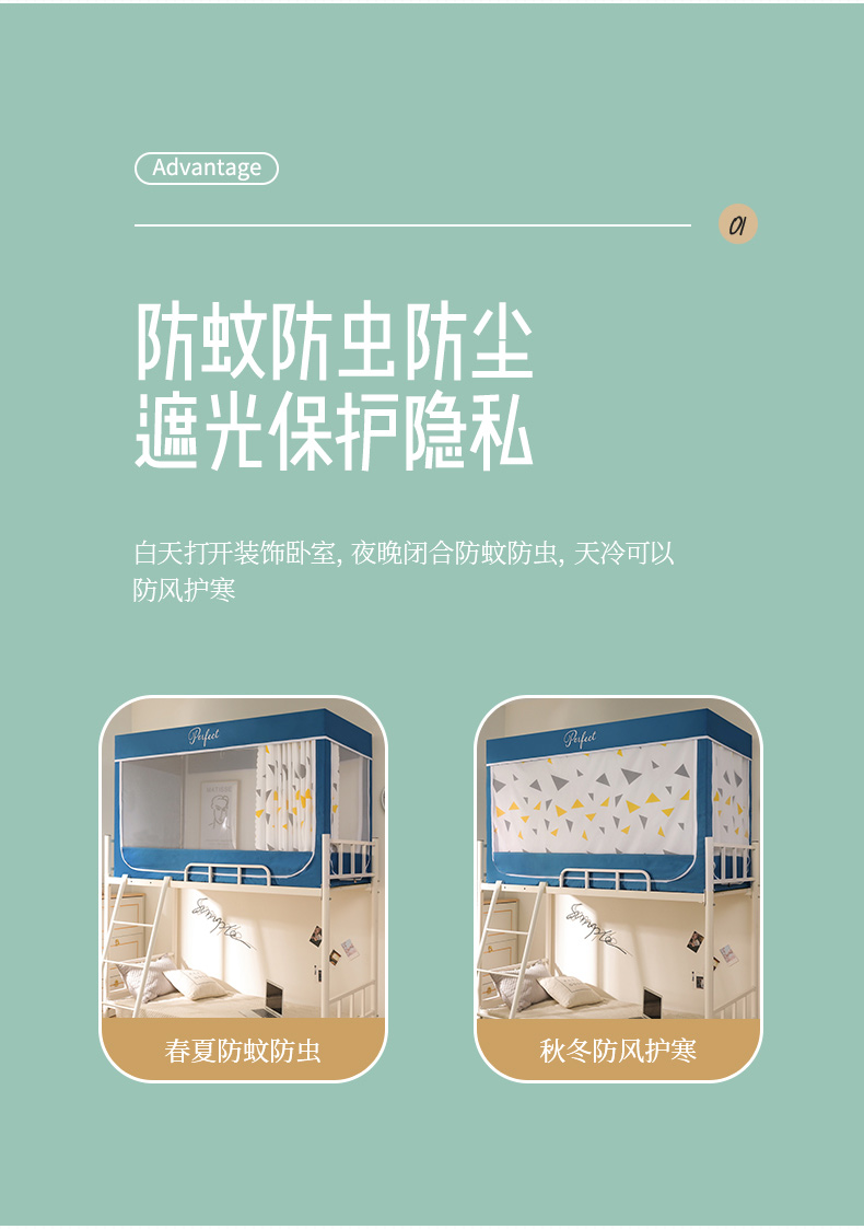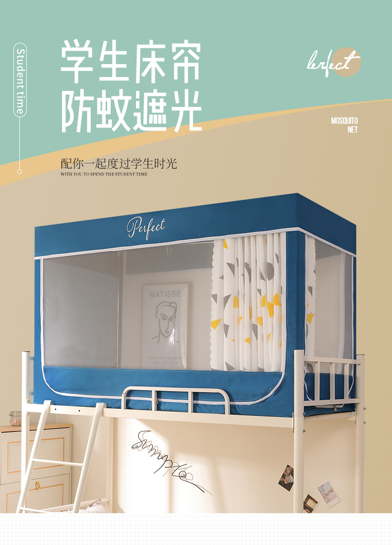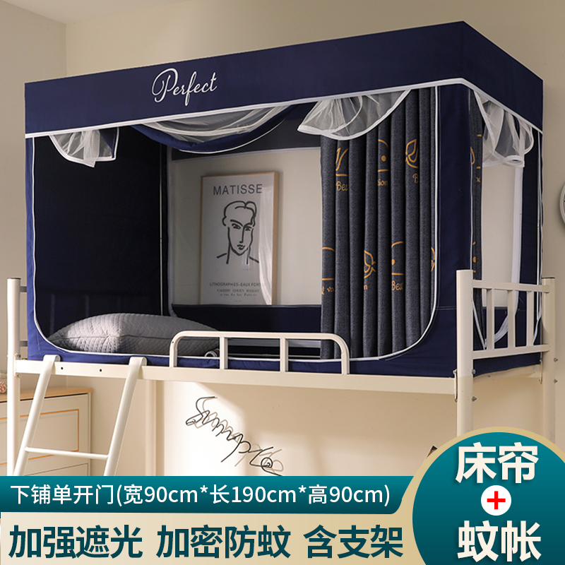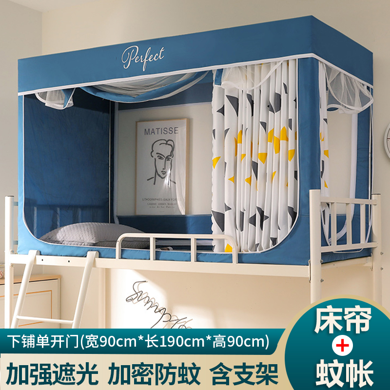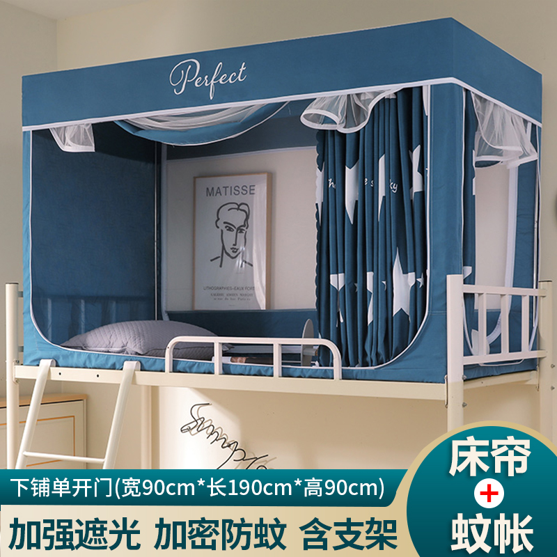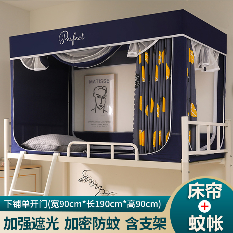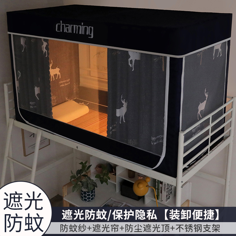 모기장 학생 기숙사 침대 커튼 일체형 지지대 포함 상단 및 하단 지퍼 유형 범용 차광 싱글 완전 밀폐형스토어 가기