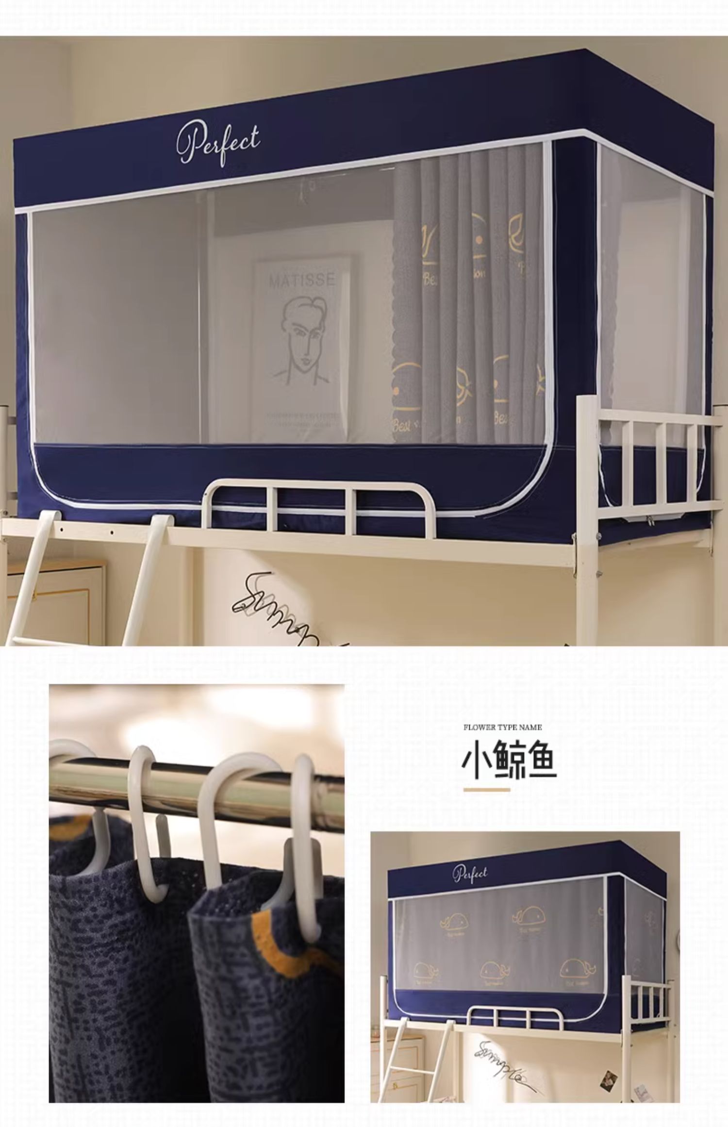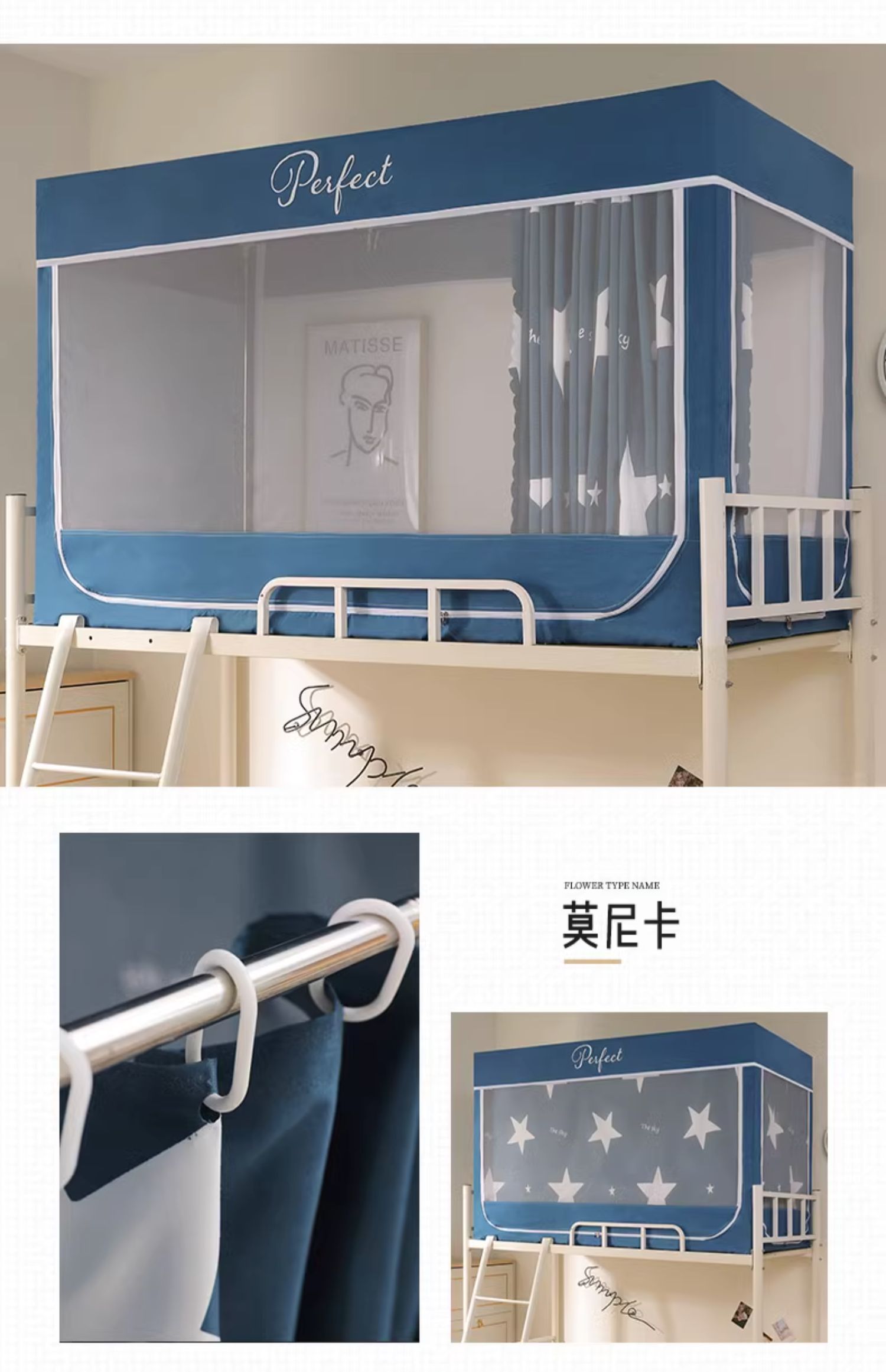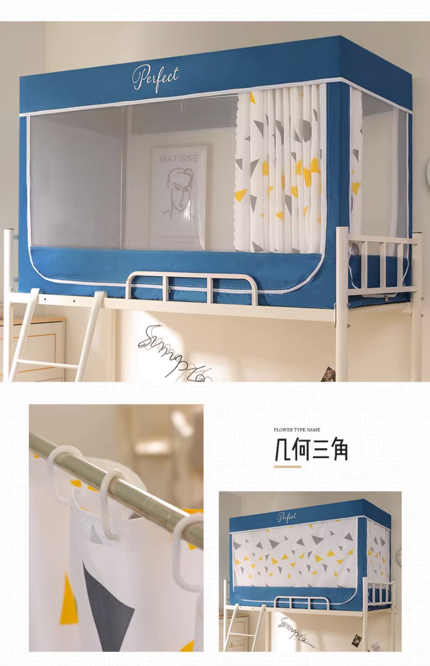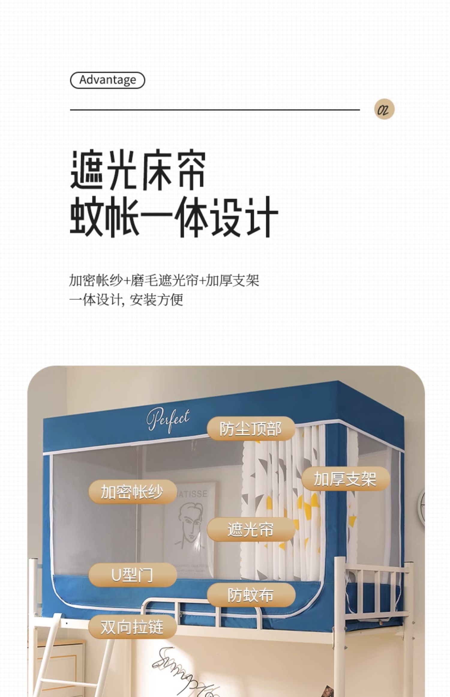 모기장 학생 기숙사 침대 커튼 일체형 지지대 포함 상단 및 하단 지퍼 유형 범용 차광 싱글 완전 밀폐형스토어 가기