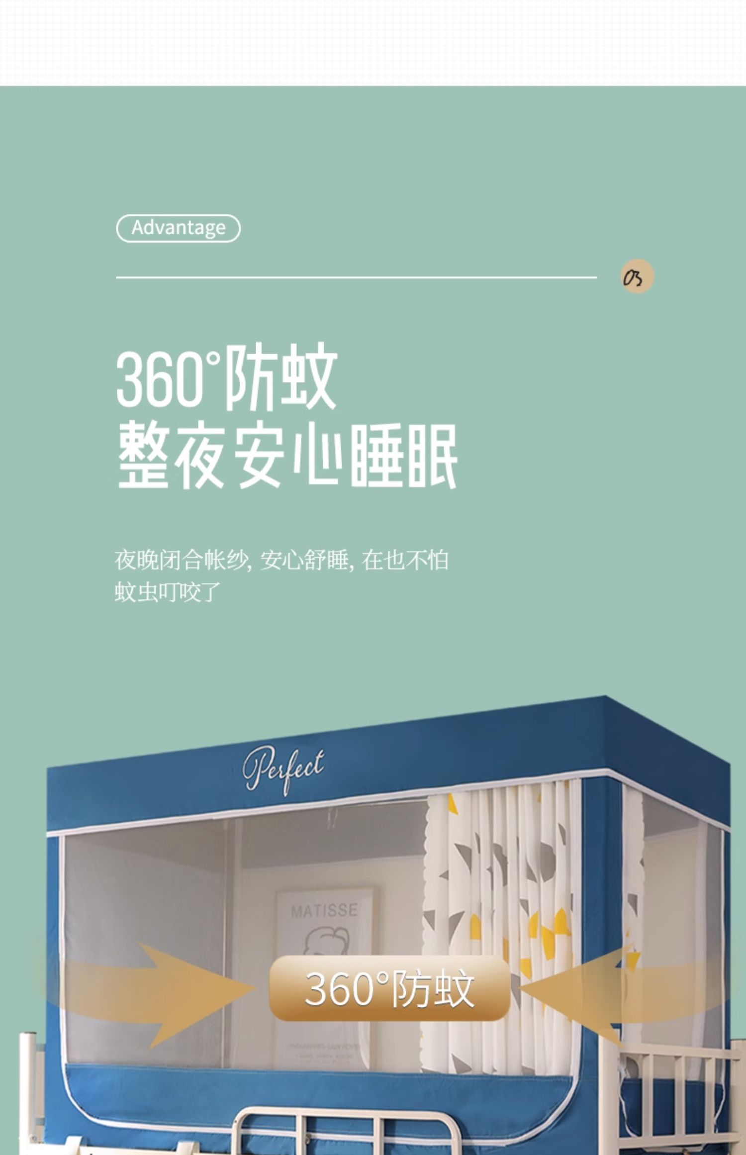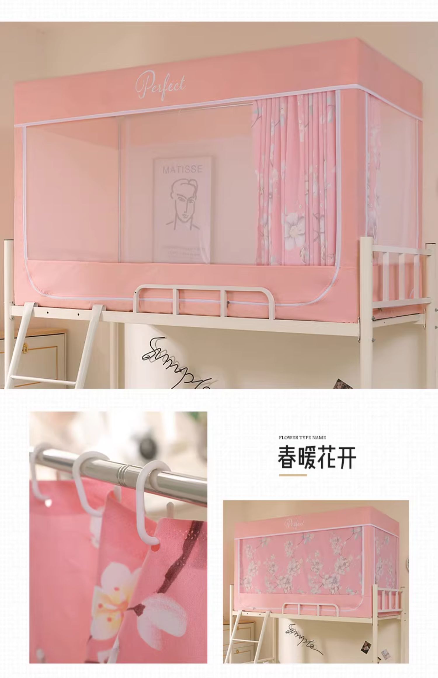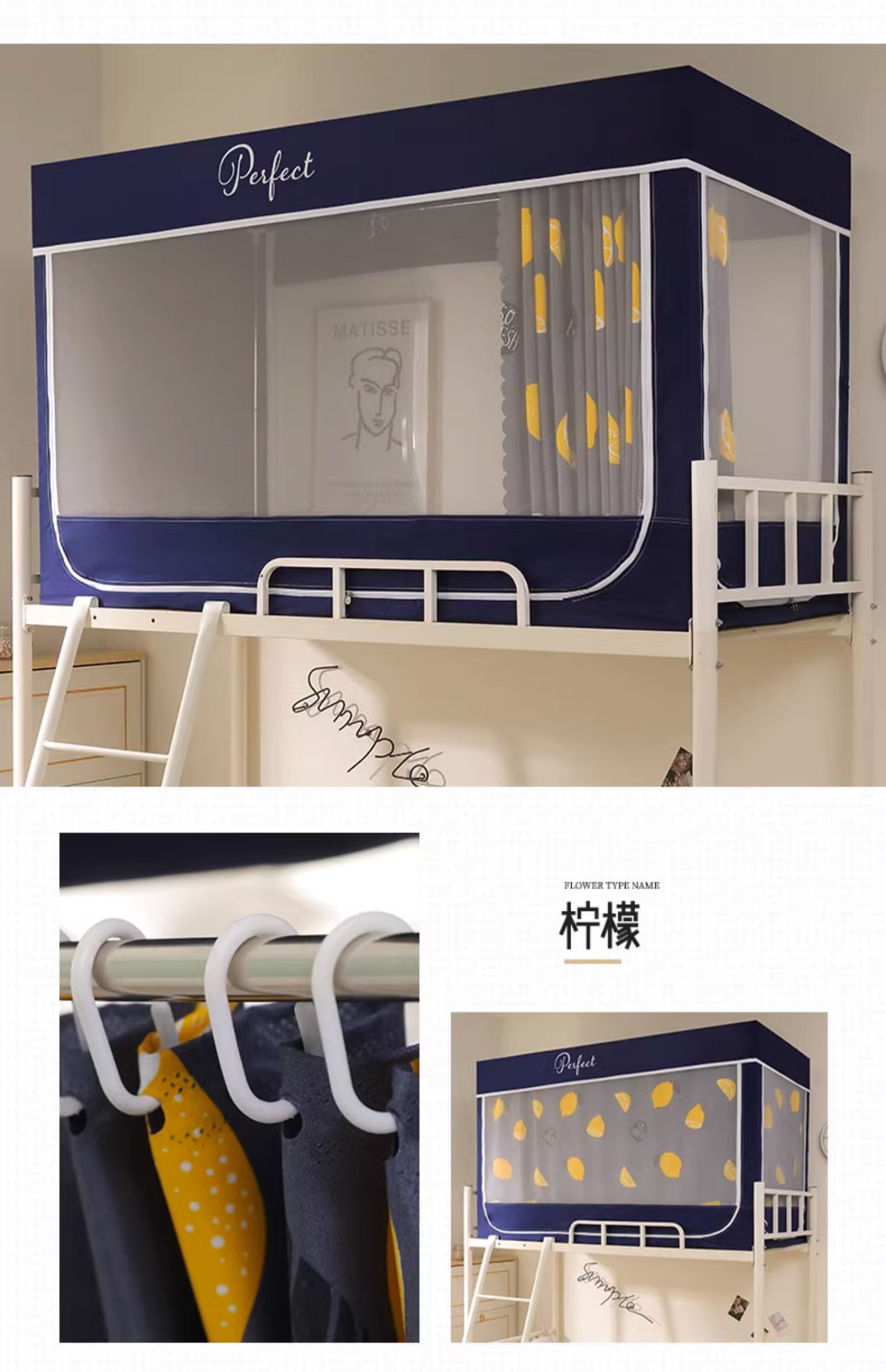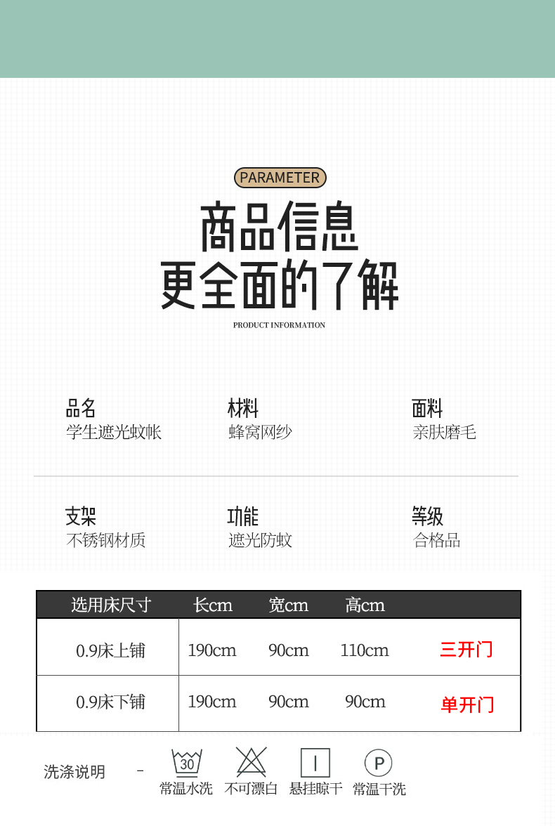 모기장 학생 기숙사 침대 커튼 일체형 지지대 포함 상단 및 하단 지퍼 유형 범용 차광 싱글 완전 밀폐형스토어 가기