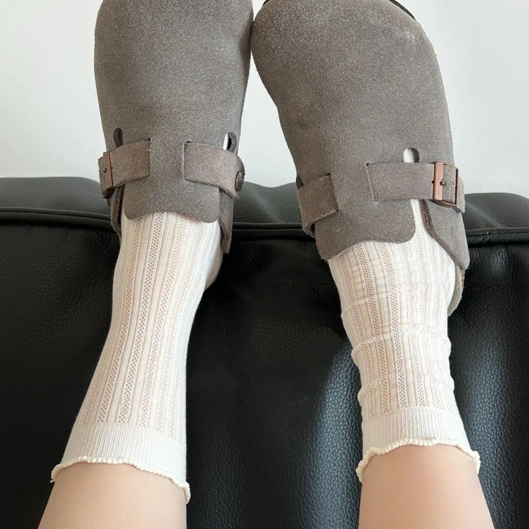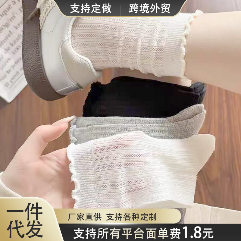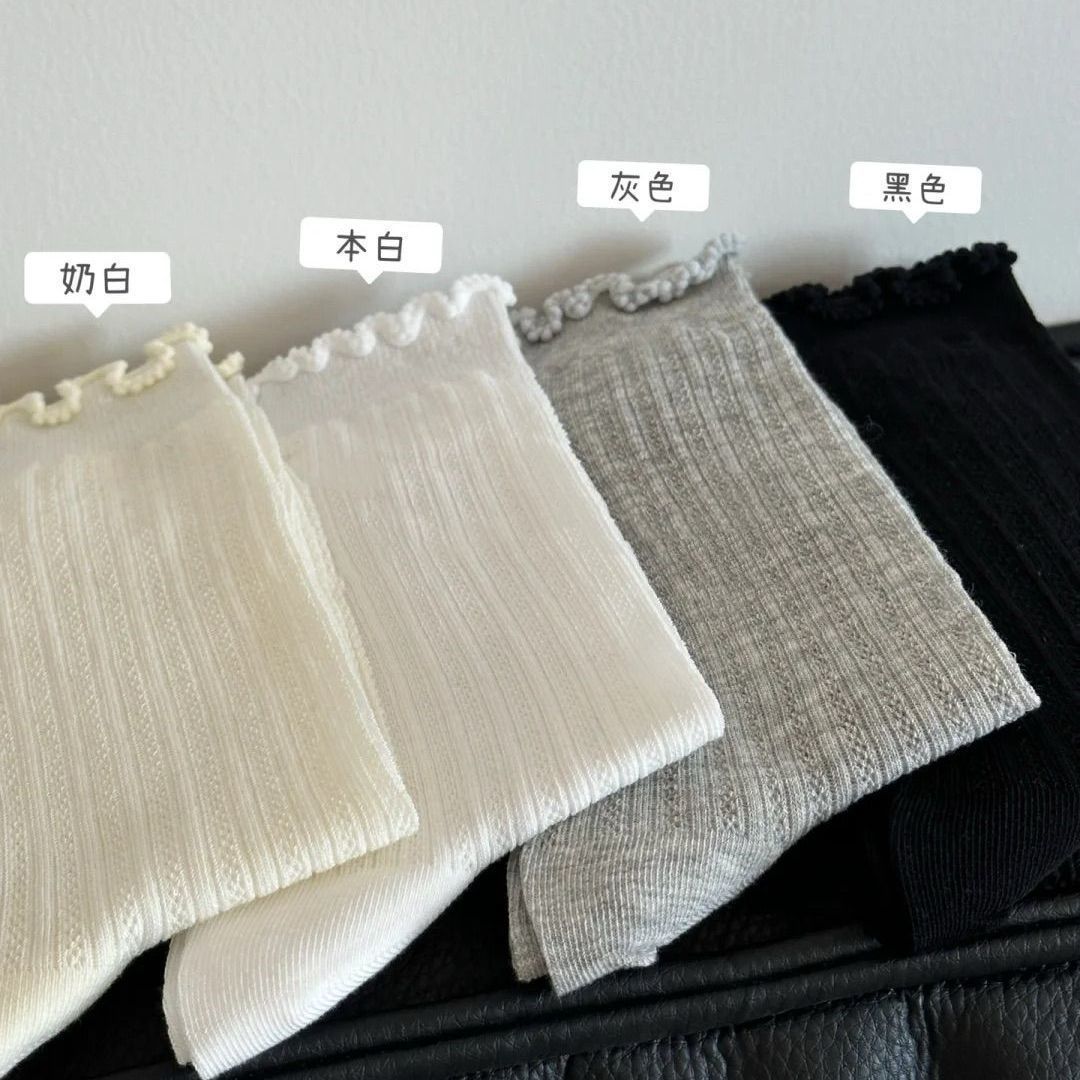 한국 스타일 Ins 유행 단색 중공 메쉬 중간 크기 양말 봄과 여름 일본 스타일 얇은 간단한 소녀의 레이스 더미 양말