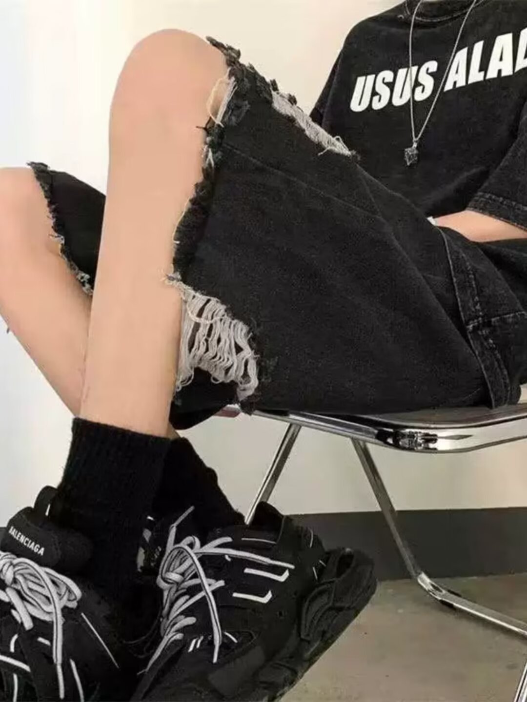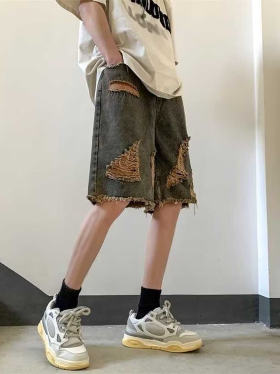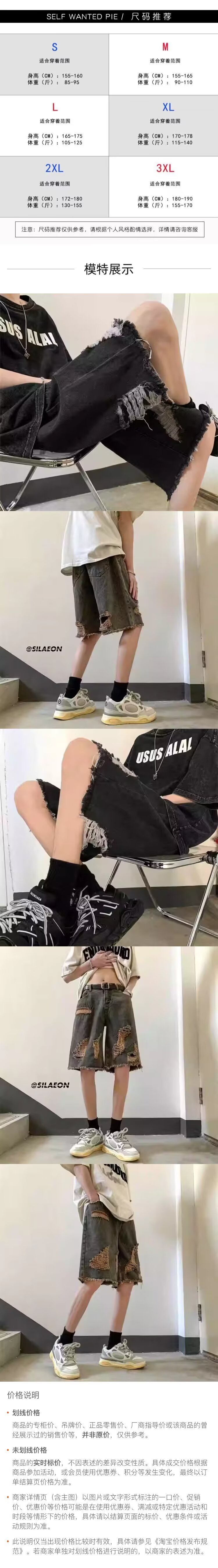 남성용 여름 얇은 5부 데님 반바지 한국 스타일 트렌디 찢어진 슬림 캐주얼 트렌디 브랜드 바지 남성용 5부 바지스토어 가기