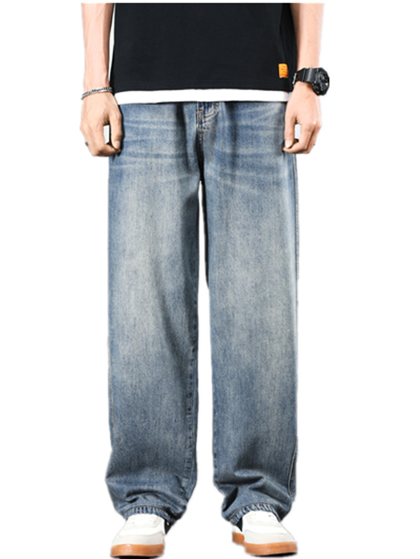 여름 얇은 Lyocell 레트로 청바지 남자의 느슨한 투약 넓은 다리 바지 2024 트렌디 한 스트레이트 바지