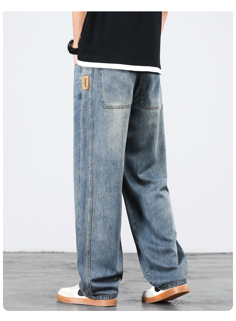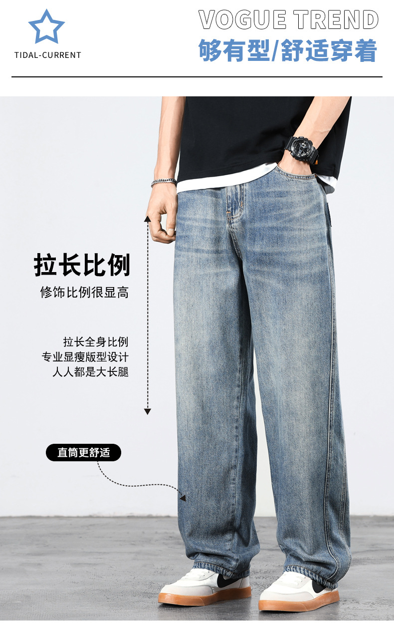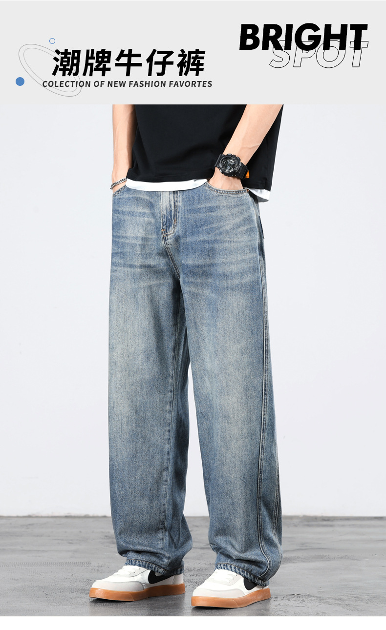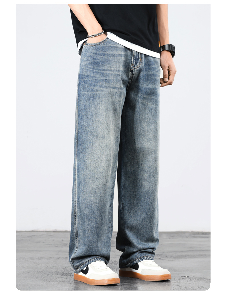 여름 얇은 Lyocell 레트로 청바지 남자의 느슨한 투약 넓은 다리 바지 2024 트렌디 한 스트레이트 바지스토어 가기