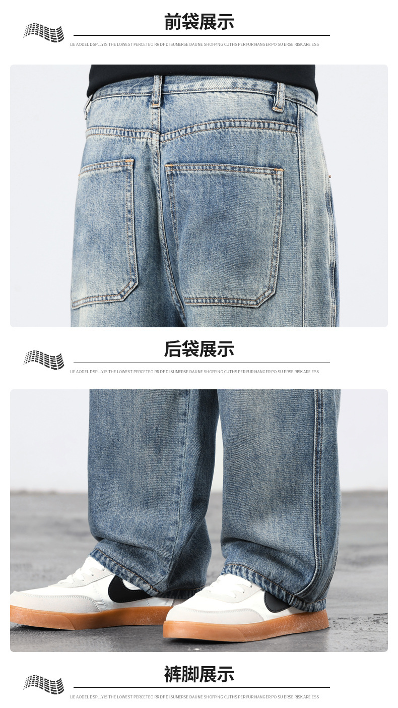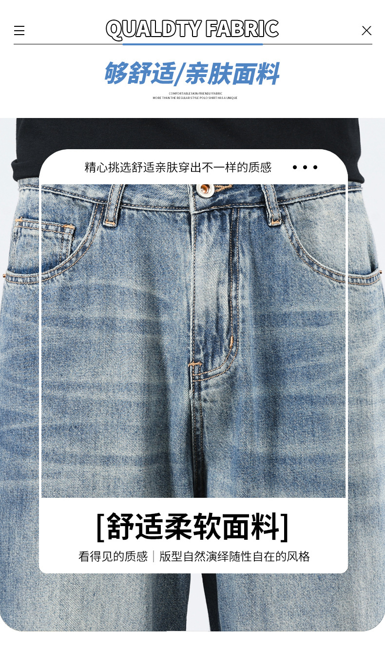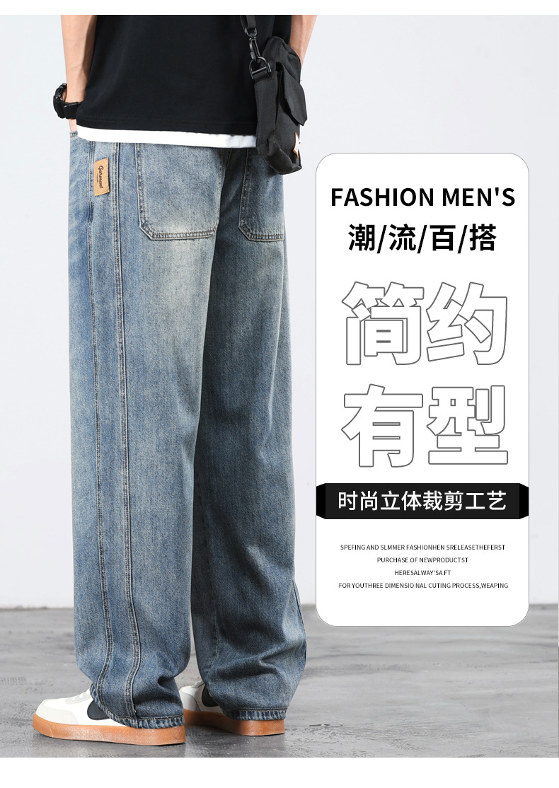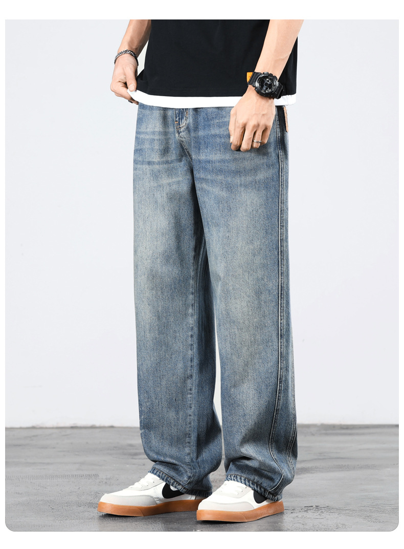 여름 얇은 Lyocell 레트로 청바지 남자의 느슨한 투약 넓은 다리 바지 2024 트렌디 한 스트레이트 바지스토어 가기