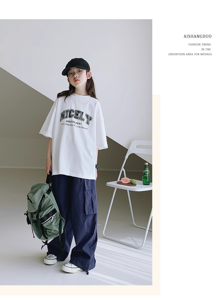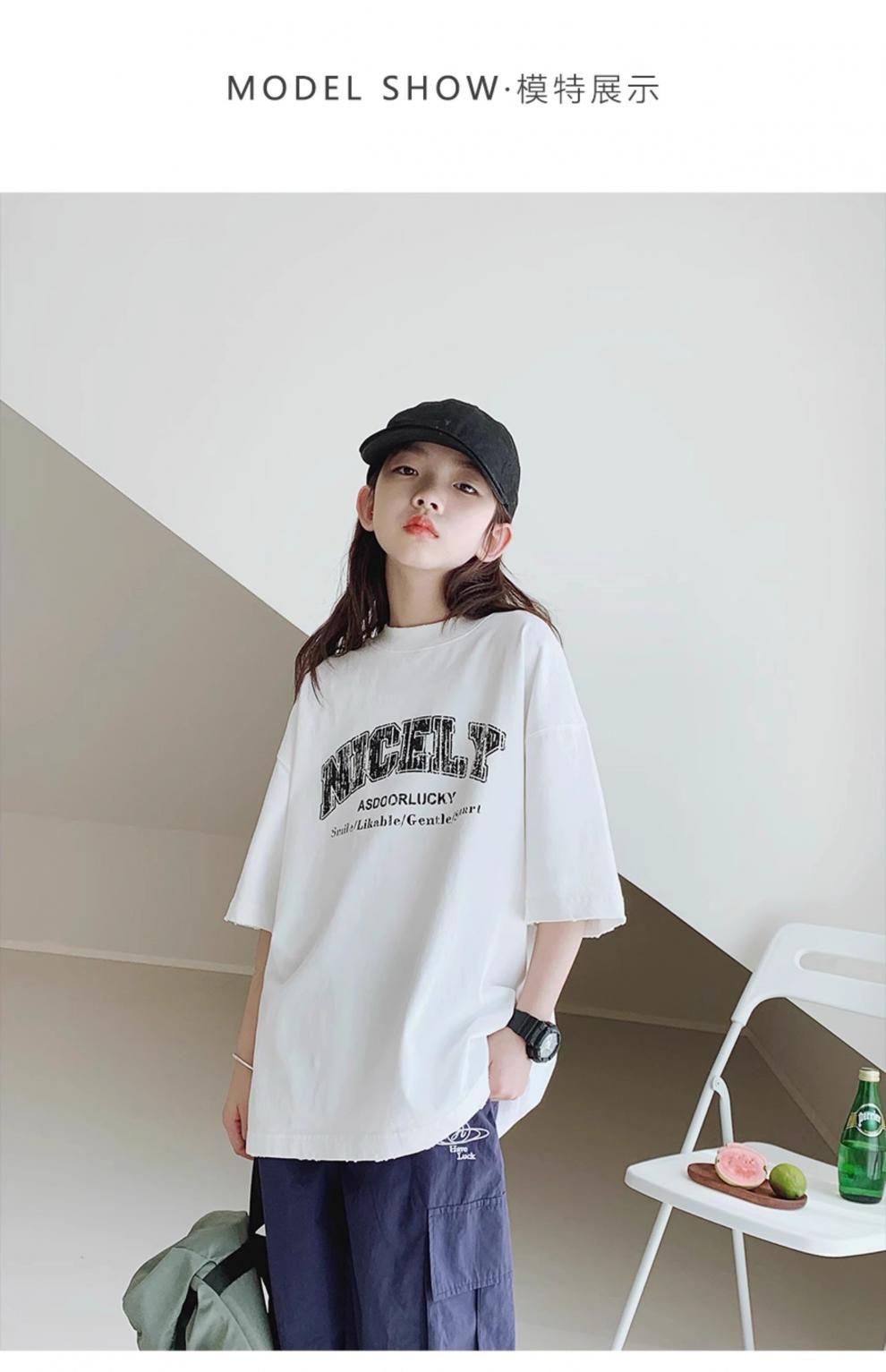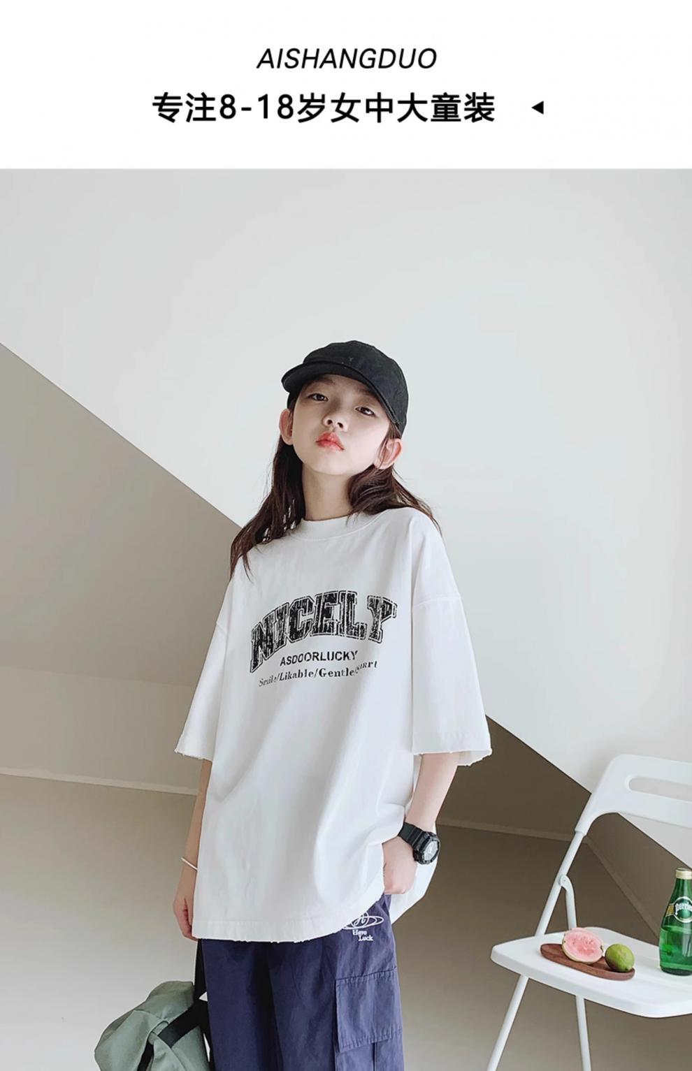여자 티셔츠 2024 여름 새 스타일 여중학생 패션 쿨 반팔 느슨한 반소매 어린이 및 학생스토어 가기