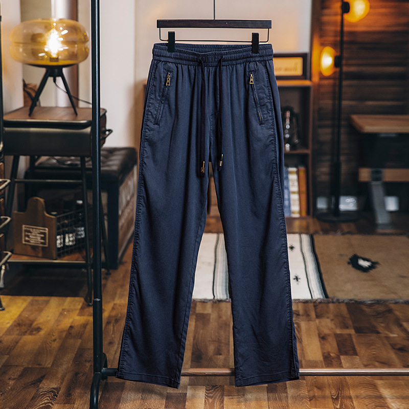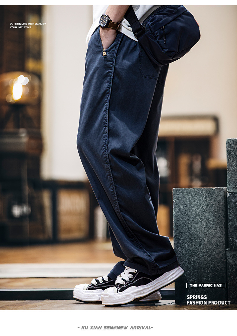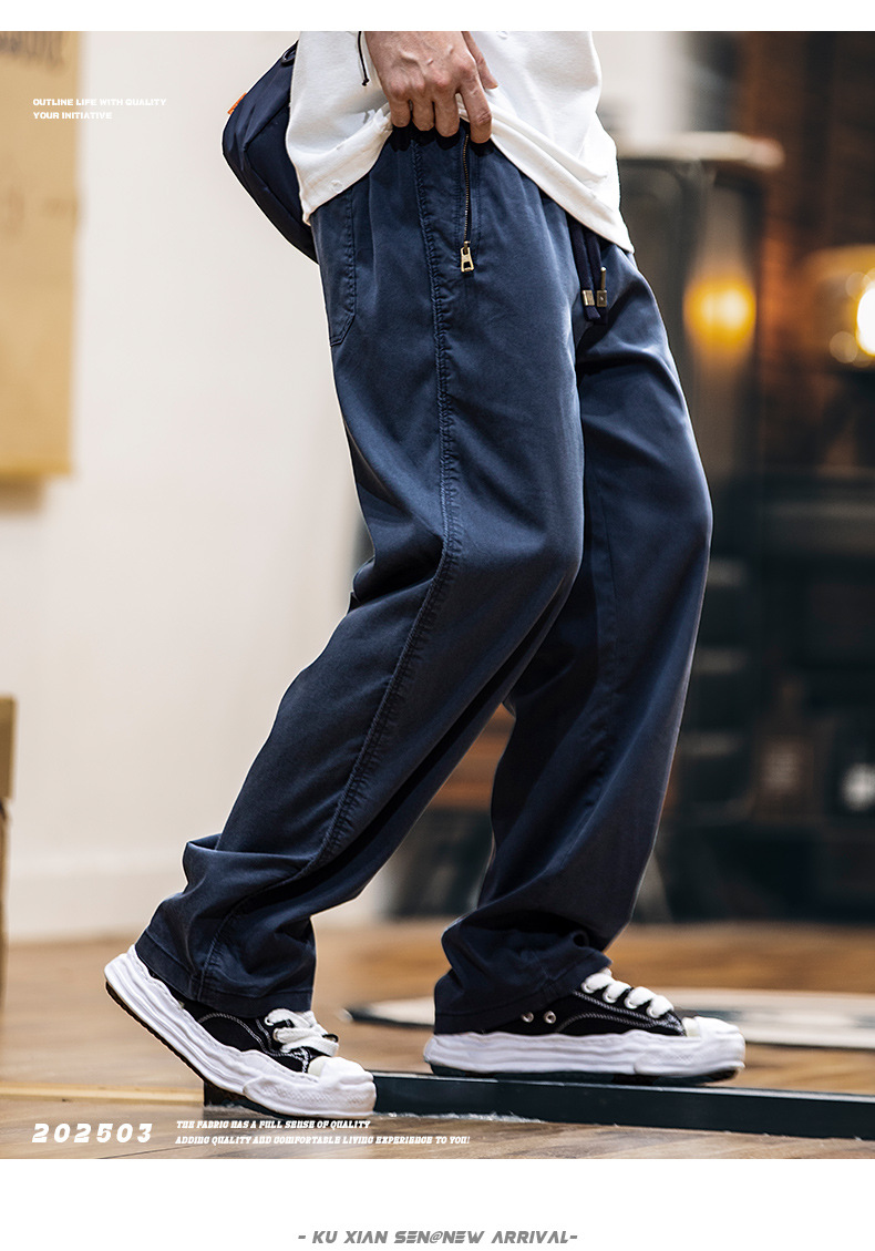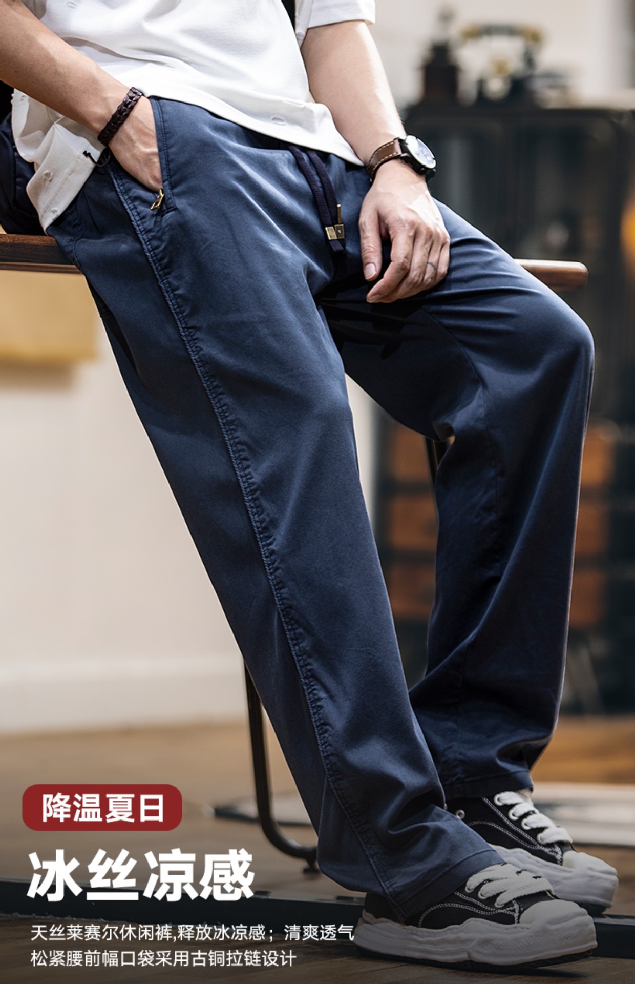 Lyocell 스트레이트 캐주얼 바지 남자 봄과 여름 2025 새로운 미국 스타일 레트로 쿨 아이스 실크 바지 여름 남자 바지스토어 가기