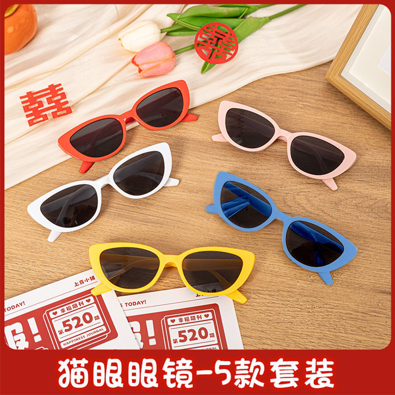 레트로 신부 들러리 드레싱 가운 사진 유물 고양이 눈 안경 선글라스 세트 웨딩 웨딩 재미있는 소품스토어 가기