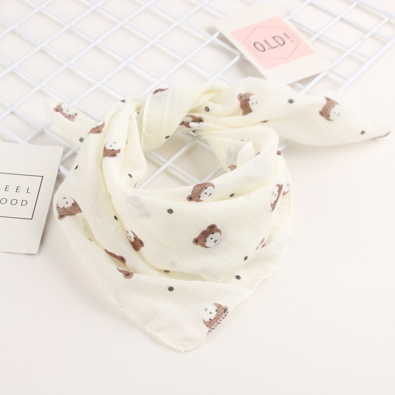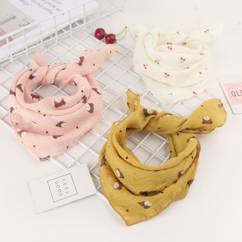 아기 광장 스카프 한국 스타일 아기 앞 유리 스카프 봄과 가을 소년 소녀를위한 얇은 스카프 면화 및 리넨 베어 어린이 스카프