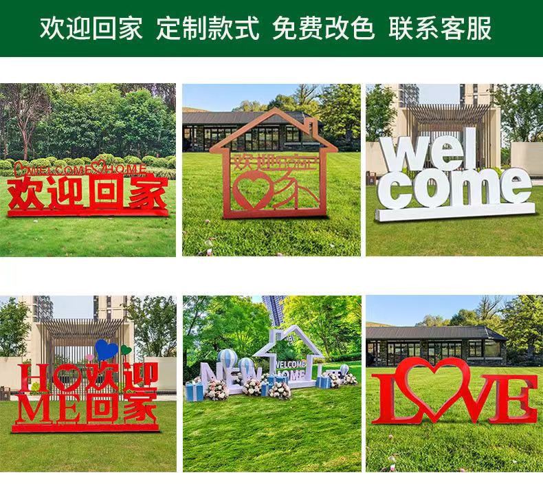 금속 3 차원 문자 환영 홈 그물 붉은 바닥 장식품 안뜰 판매 사무실 커뮤니티 공원 숲 철 예술 장식