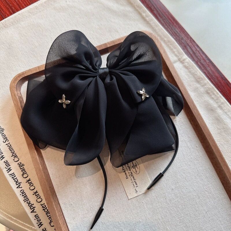 高级感缎面大号黑色蝴蝶结鲨鱼夹头饰方形钻后脑勺发夹抓夹女发卡