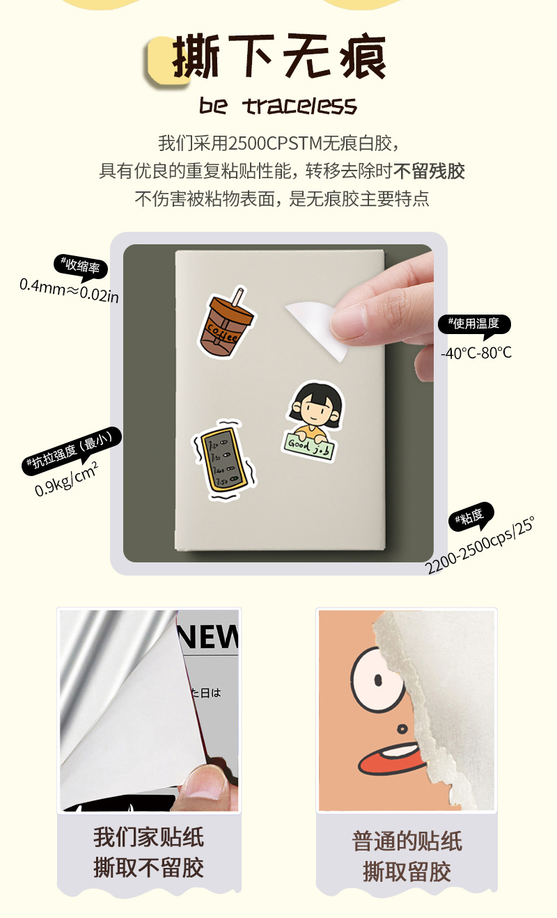 3.机器已经切割好,不用再单独裁剪,撕下即贴不留痕迹,可以重复使用