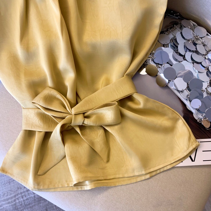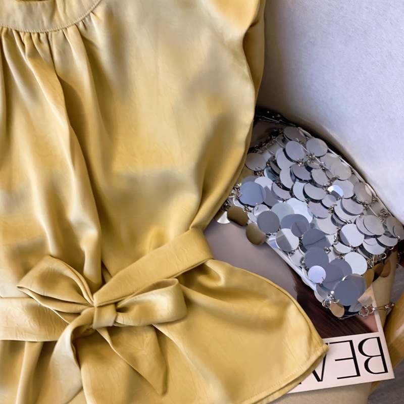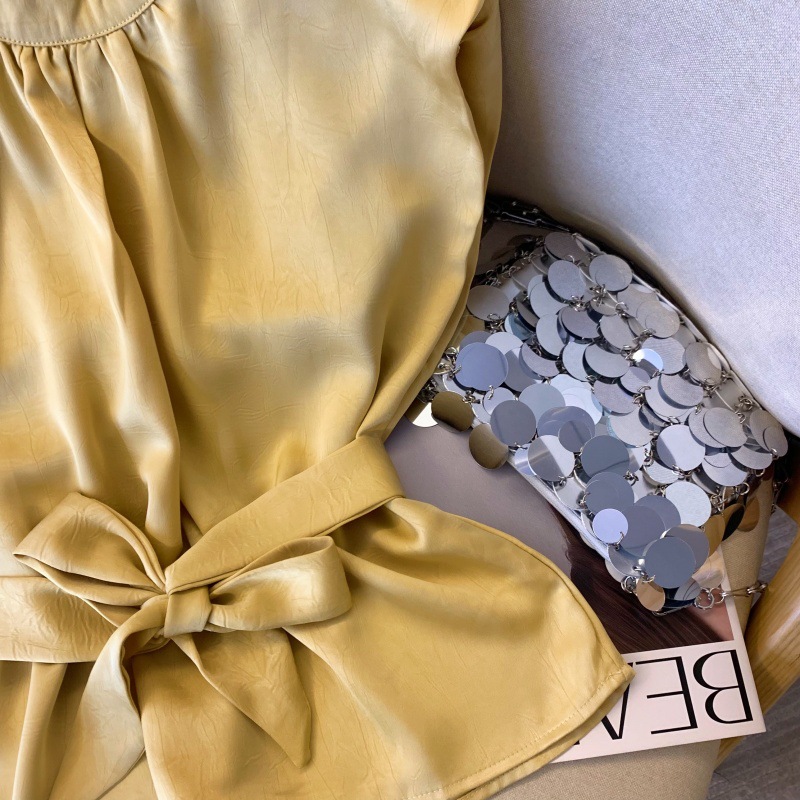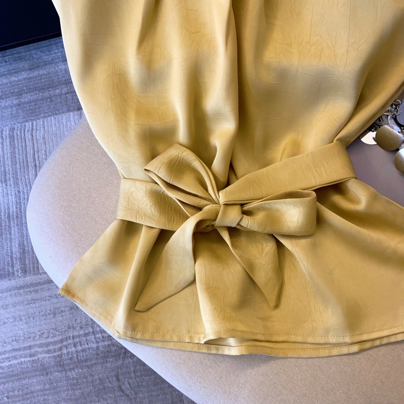 진짜 샷 ~ 프랑스 하이 엔드 느낌 기질 쉬폰 셔츠 여성의 유럽 상품 작은 셔츠 폭발 레이스 업 디자인 느낌 탑