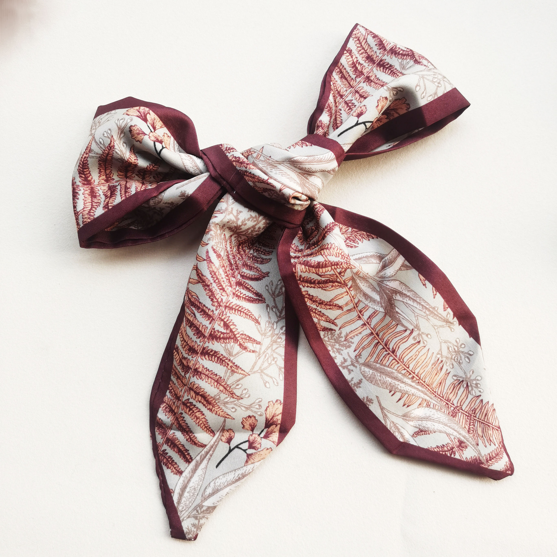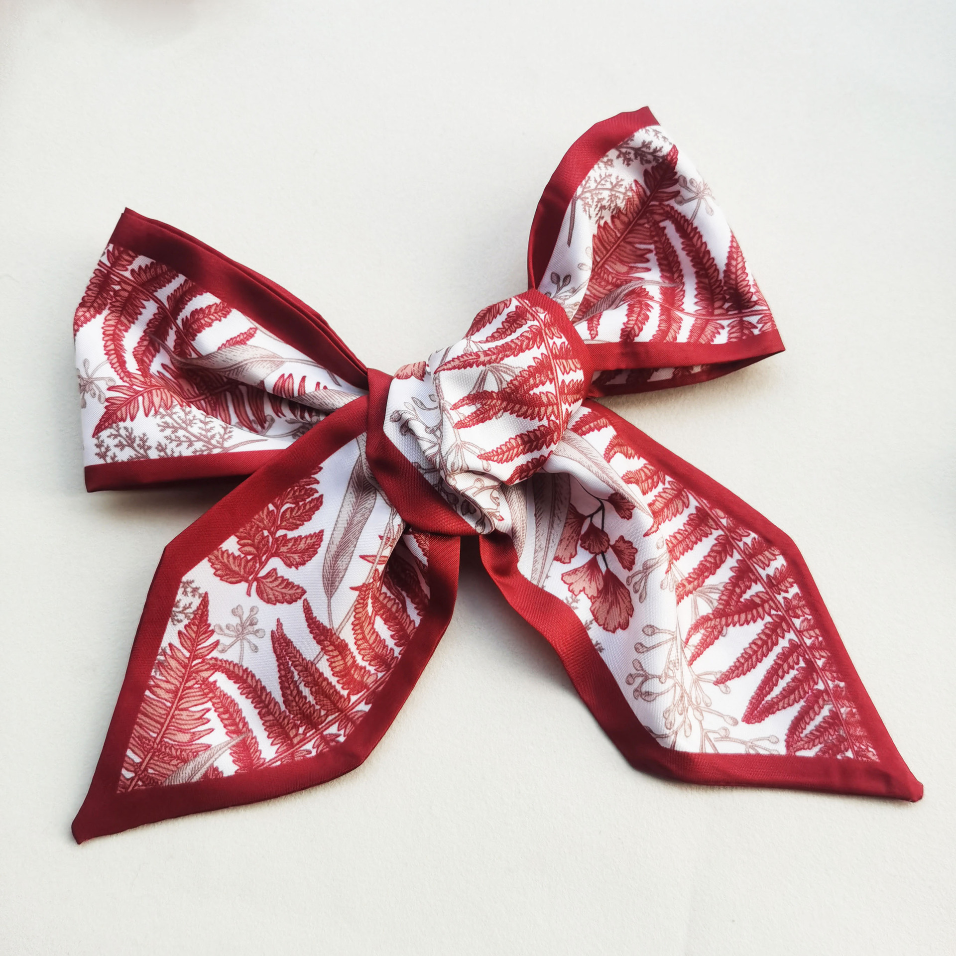 프랑스 우아한 실크 스카프 리본 헤어 액세서리 메이플 리프 타이 백 액세서리 벨트 헤드웨어 헤어 좁은 장식품 헤어 밴드 도매