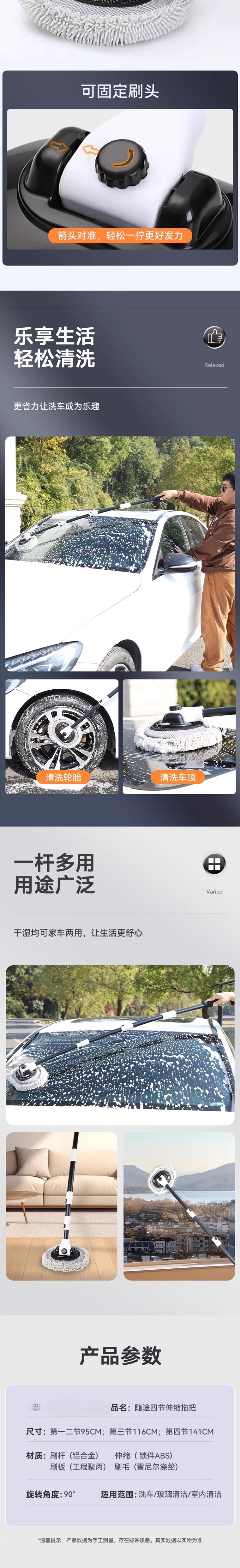 • [4단 신축 및 탈부착 가능한 걸레] 전체 굴곡 25 ° +수입원료 세차제 + 수건으로 손쉽게 세차